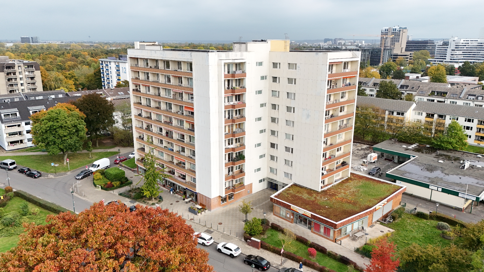 Im Erdgeschoss des Gebäudes befinden sich verschiedene Geschäfte des täglichen Bedarfs: ein Optiker/ Akustiker, ein Pflegedienst, ein Kosmetikstudio, ein Friseur und eine namhafte Bäckerei mit Café.