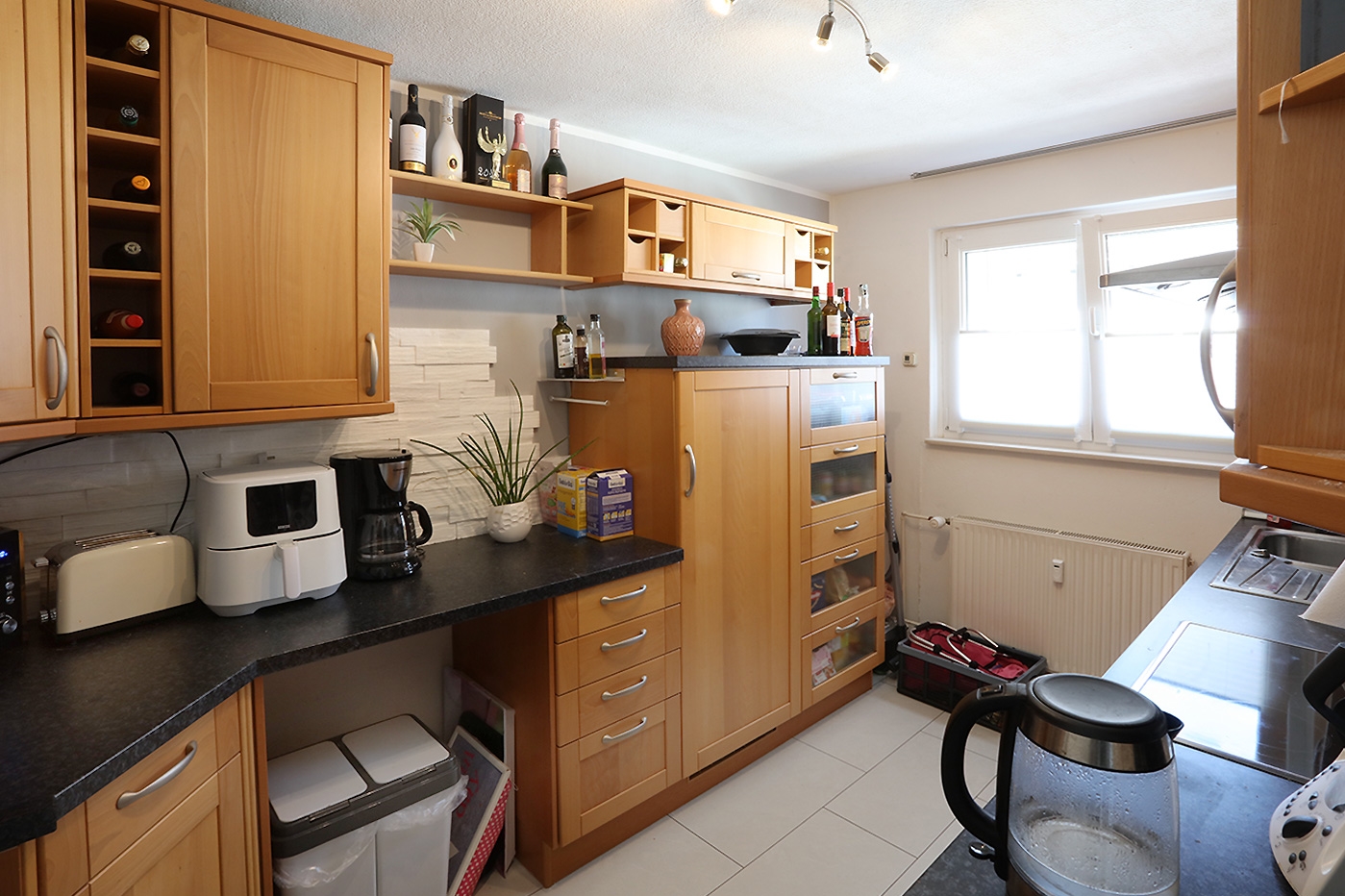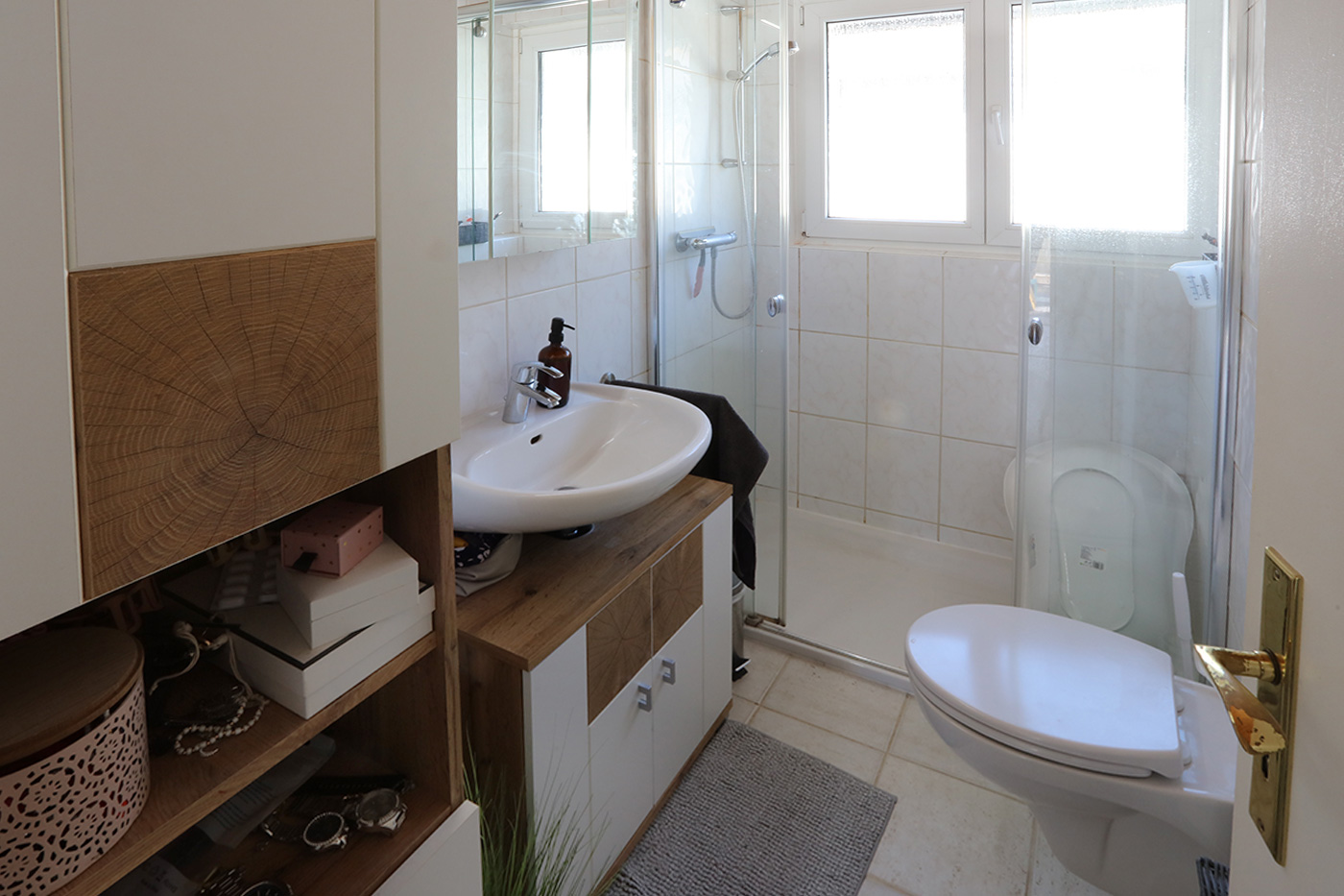 2012 wurde das Haus zusätzlich mit 16 cm Perimeterdämmung versehen und farblich neu angelegt, das Dach gedämmt und neu eingedeckt sowie 2016 mit einem Gasanschluss und neuer Heizung/WW ausgestattet. Die Bäder sind von ca. 2000. Trotzdem muss noch einiges gemacht werden: Entfernung Holzvertäfelungen, Heizungsleitungen noch teilw. Aufputz, die Bäder, Innentüren, Oberböden sowie Malerarbeiten inkl. Westfassadenanstrich … – wir schätzen die Kosten auf gut 90.000 EUR.