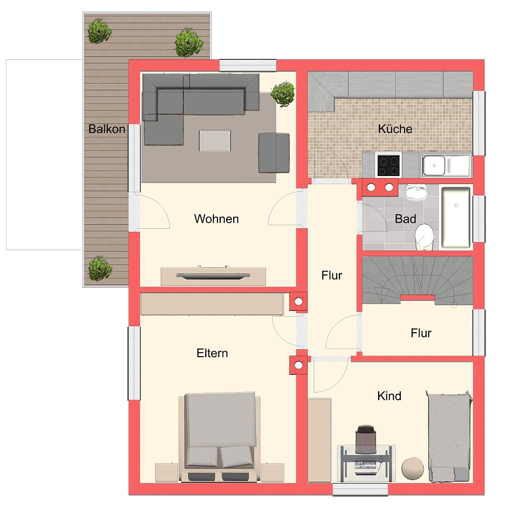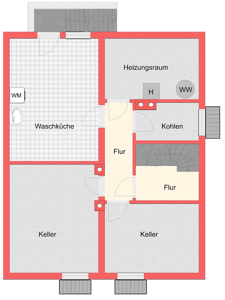 Das zuletzt als 2-Familienhaus genutzte Objekt verfügt über 2 identische aufgeteilte 3-Zimmer-Wohnungen (bei Bedarf können Sie natürlich auch im OG 3 Schlafzimmer nutzen). Das Haus ist voll unterkellert und es verfügt über ein wohnraumähnlich ausgebautes DG von gut 40 m² (keine Wohnfläche).
