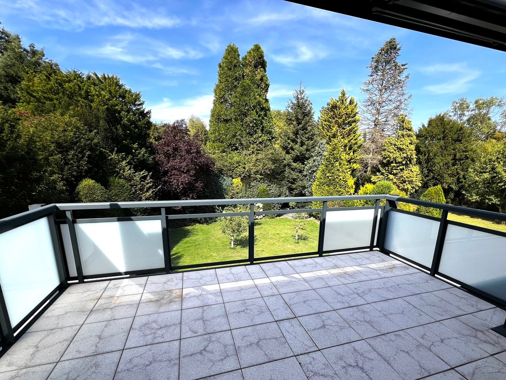 – Zwei Balkone: einer an der Giebelseite des Hauses und ein besonders großer Balkon (teilweise überdacht) mit herrlichem Blick in den Garten, elektrischer Markise und viel Platz zum Entspannen