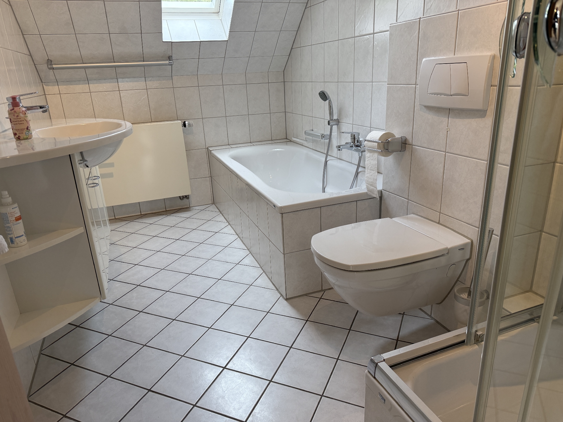 – Helles Tageslichtbad mit Badewanne und Dusche