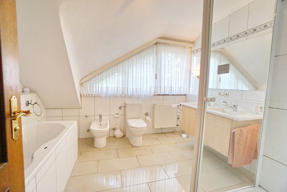 Die Immobilie ist voll unterkellert. Der großzügige Keller bietet Ihnen zusätzlich viel Platz für Hobbys, Lagerräume oder sogar einen Fitnessbereich. Zudem finden Sie hier einen sanierungsbedürftigen Poolbereich mit Sauna. Die Ausstattung der Immobilie befindet sich im baujahrestypischen Zustand und Stil der 1980er Jahre. Auch Innenarchitektonisch sind diese Stilelemente erkennbar. Die Immobilie ist mit einer Fußbodenheizung ausgestattet, welche über die Gaszentralheizung beheizt wird.
