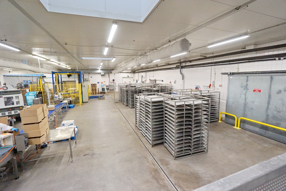 Die Stahlrahmenkonstruktion der Halle bietet Flexibilität: Die Flächen sind individuell teilbar und passen sich spezifischen Anforderungen an. Die Gewerbehalle dient aktuell als Produktionshalle für Backwaren. Die technische Ausstattung entspricht den heutigen Anforderungen einer modernen Gewerbehalle, z.B. RWA-Anlage, Raumluftanlage, Starkstrom, Schnelllauftore, Hochregallager, etc.