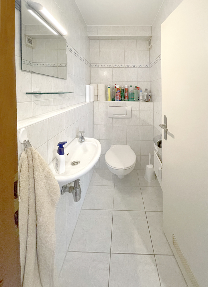 • Kapitalanlage mit 2 Loggien und 3 Zimmern im 1. OG zu verkaufen. Diese seit 2000 vermietete, helle und sehr gut geschnittene Wohnung hat ca. 83 m² Wohnfläche, ein hell gefliestes Gäste-WC und ein hell gefliestes, innenliegendes Wannenbad mit Waschmaschinenanschluss.