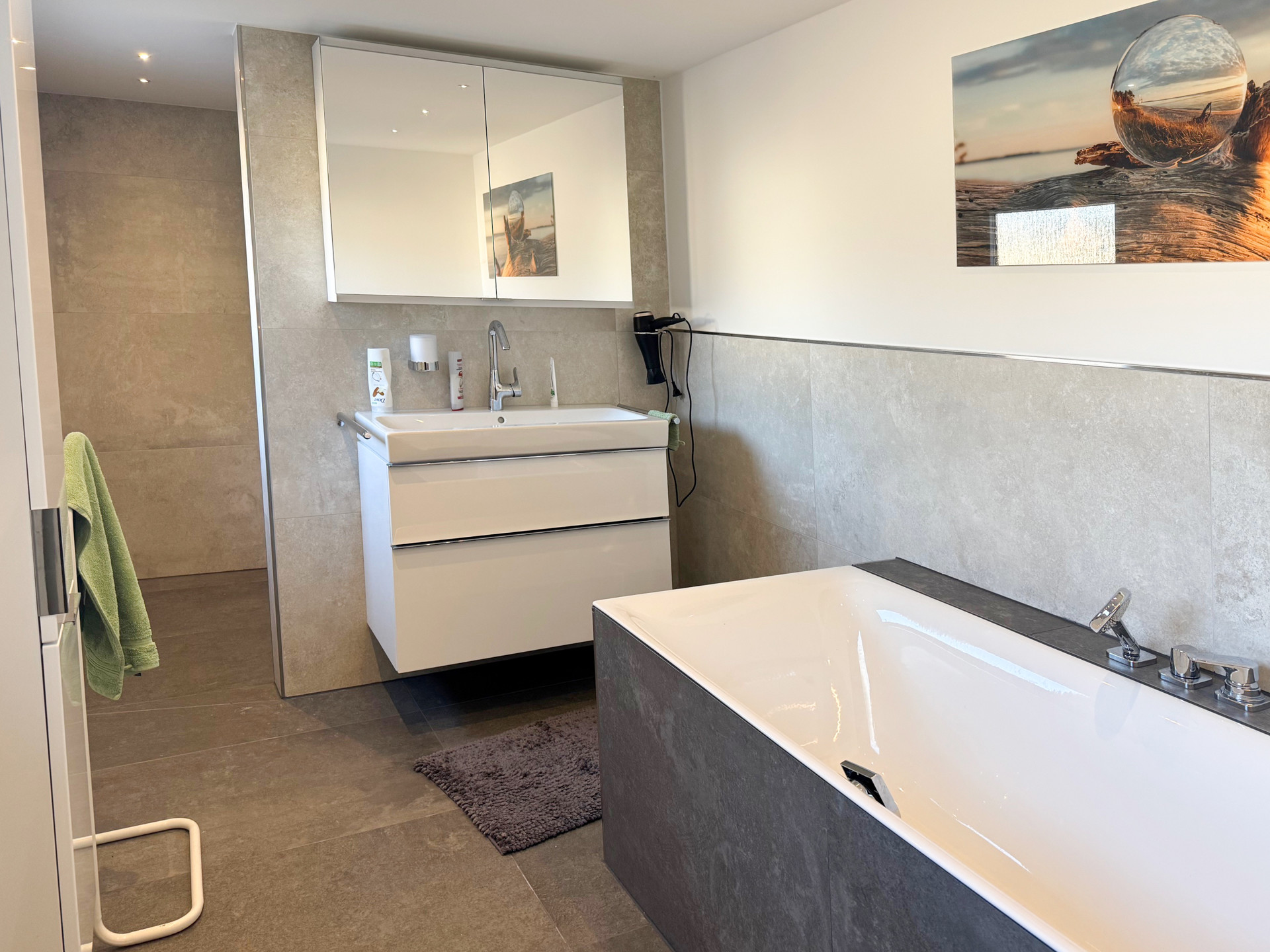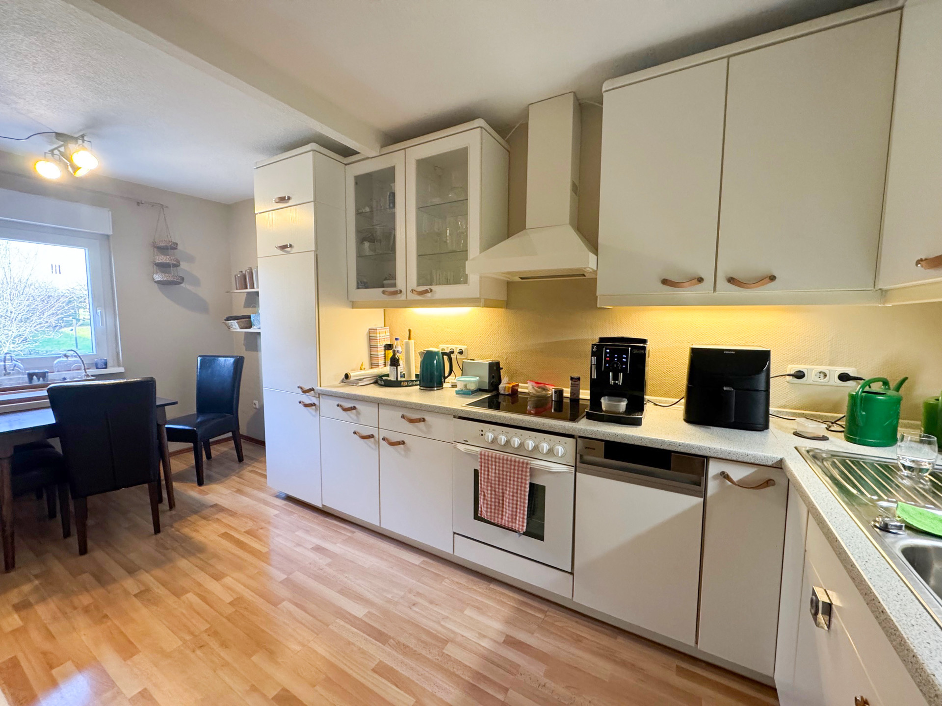 Das Wohnhaus wurde ca. 1997 kernsaniert, besteht aus zwei Vollgeschossen und ist teilweise unterkellert. Alle drei Wohneinheiten sind separat von außen zu begehen. Die Wohnung (DG rechts) mit ca. 100 m² besteht aus einem Wohn-/ Essbereich mit einer großzügigen Dachterrasse, einem Flur, einer Küche, einem hochwertigen Badezimmer und einem Büro. Über eine Treppe gelangen Sie in das ausgebaute Dachgeschoss mit zwei Schlafzimmern und einem modernen Bad. Die Wohnung (DG links) mit ca. 140 m² gliedert sich auf in drei Zimmer, ein hochwertiges Badezimmer, einen offenen Wohn-, Ess- und Küchenbereich mit Kamin und Balkon. Die Wohnung im EG hat eine Fläche von ca. 80 m² und teilt sich auf in zwei Schlafzimmer, ein Wohnzimmer, eine Küche und zwei Bäder.