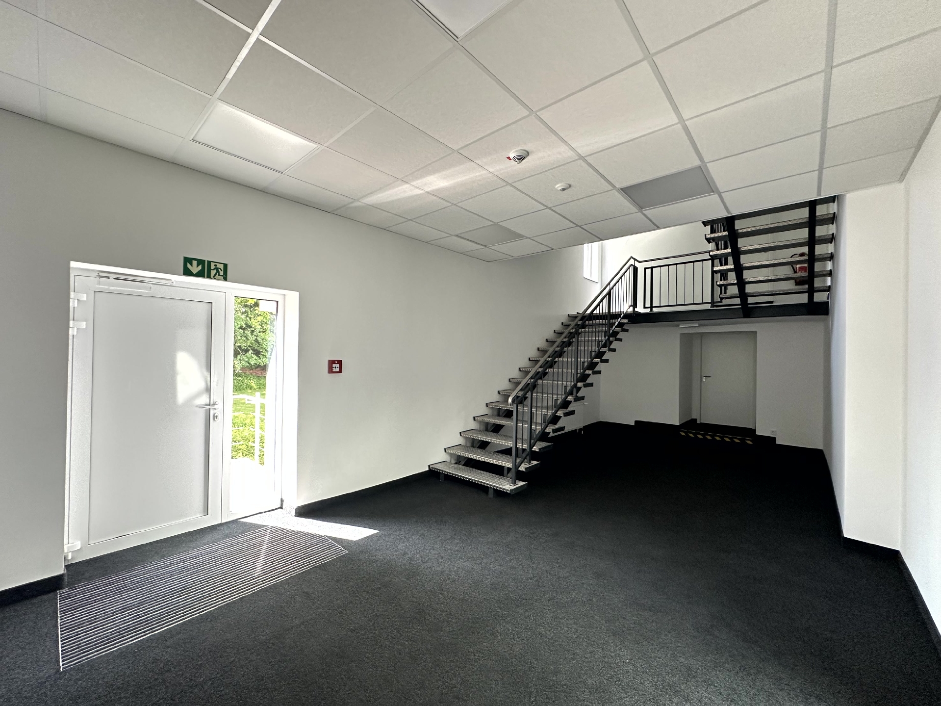 Die Fläche ist sowohl über das repräsentative Treppenhaus – direkt vom rückseitigen Parkplatz – als auch über einen straßenseitigen Haupteingang zugänglich. Diese Kombination eignet sich ideal zur Trennung von Kunden- und Mitarbeiterzugang oder zur diskreten Erschließung einzelner Nutzungsbereiche.