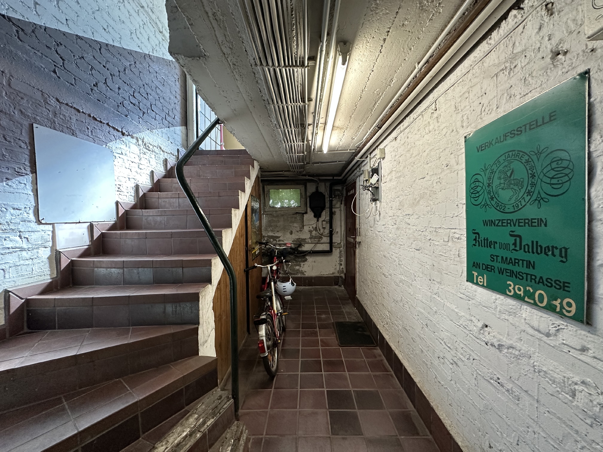 Das Gewerbe im Erdgeschoss umfasst mit ca. 318 m² eine Werkstatt, einen Büroraum und Lagerfläche. Der Mieter nutzt zudem einige Kellerräume als zusätzliche Abstellfläche.