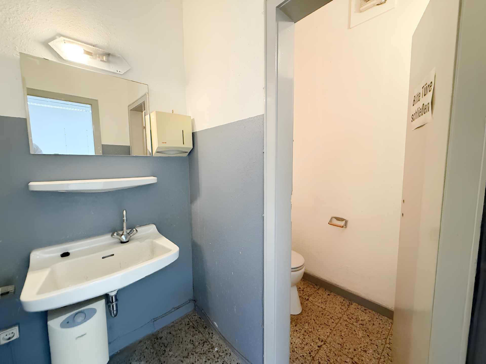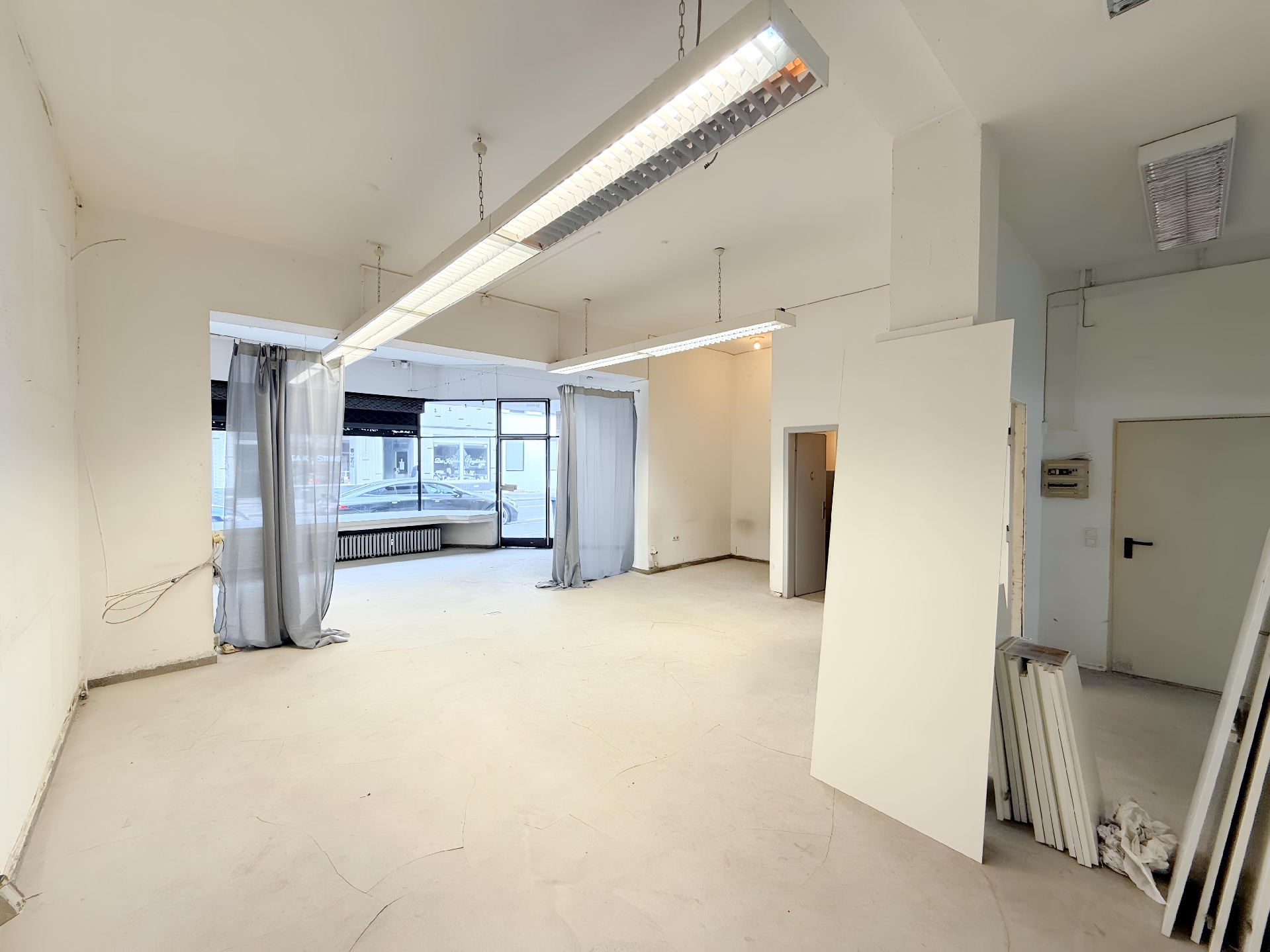 • Diese großzügige Gewerbeeinheit im Erdgeschoss eines Wohn- und Geschäftshauses aus dem Jahr 1960 bietet vielseitige Nutzungsmöglichkeiten. Sie ist in zwei separate Einheiten untergliedert, die über einen gemeinschaftlich genutzten, innenliegenden Flur miteinander verbunden sind. Diese Aufteilung eignet sich ideal für Betreiber mit mehreren Geschäftsbereichen oder für Konzepte mit Kunden- und Verwaltungszonen.