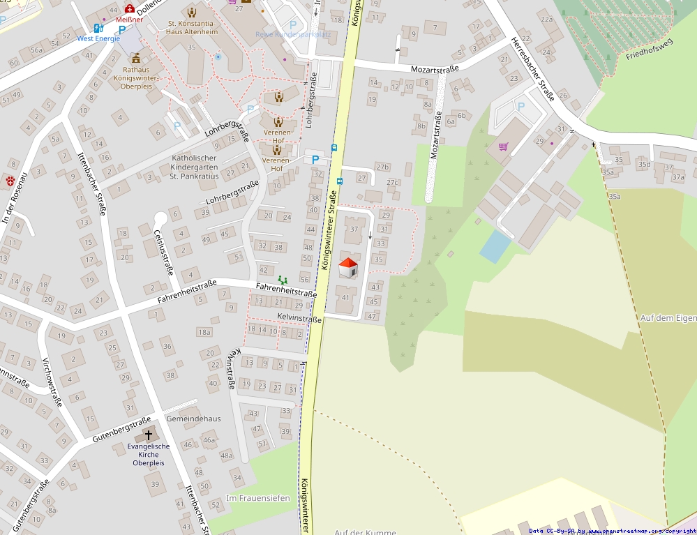 • Die Wohnung befindet sich in Oberpleis, einem beliebten Stadtteil von Königswinter, in der Königswinterer Straße. Die Lage verbindet eine gewachsene Infrastruktur mit einer angenehmen, wohnfreundlichen Umgebung. Zahlreiche Einkaufsmöglichkeiten für den täglichen Bedarf, darunter Supermärkte, Bäckereien, Cafés, Apotheken sowie weitere Geschäfte, befinden sich in unmittelbarer Nähe und sind bequem zu Fuß erreichbar.