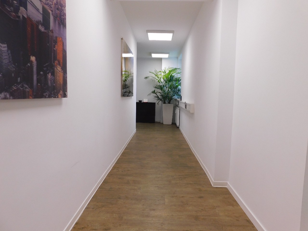 Die barrierefreie Praxisfläche ist derzeit in acht helle, gut geschnittene Räume unterteilt, die eine freundliche und einladende Atmosphäre für Patienten und Mitarbeiter bieten.