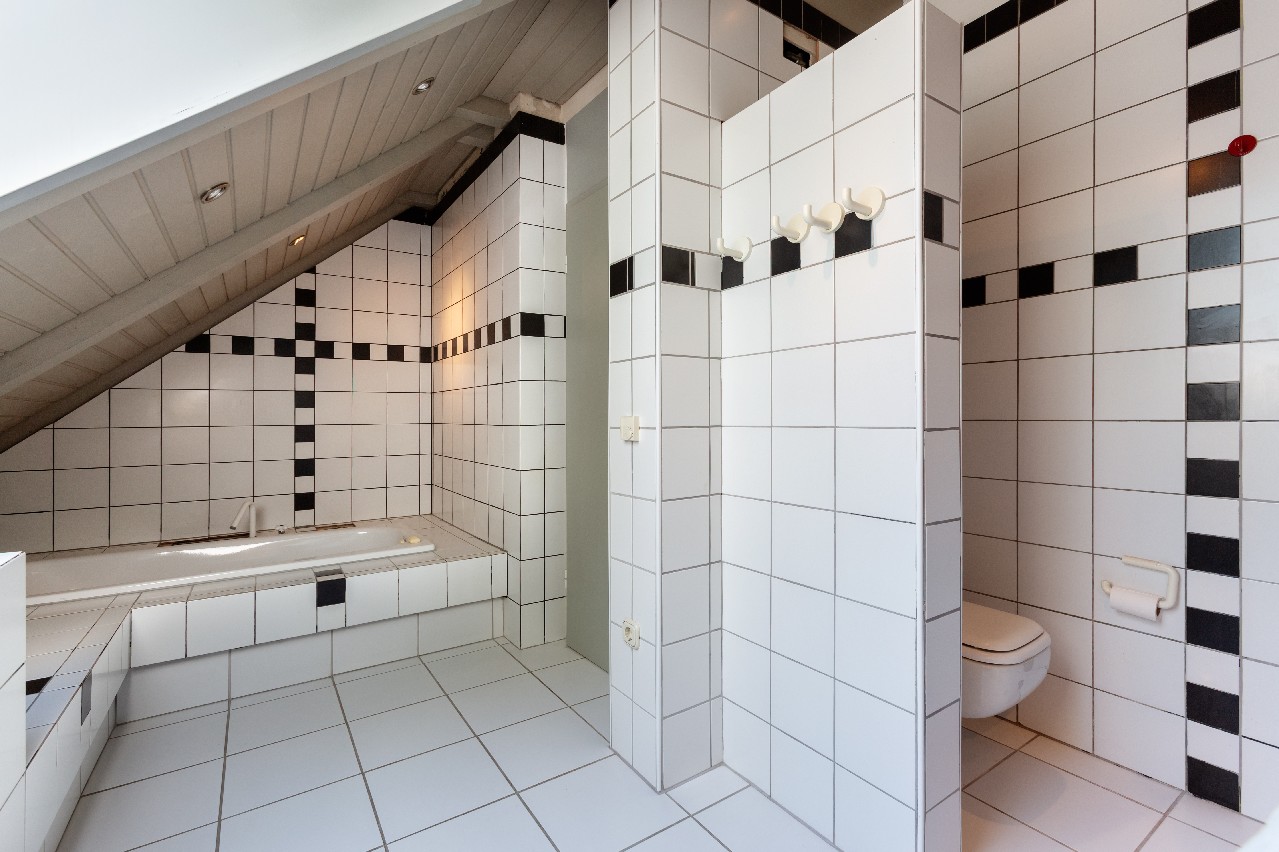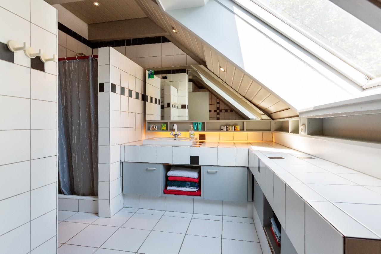 – Dachgeschoss: Dusch- und Wannenbad mit Tageslichtfenster und deckenintegrierten Spots