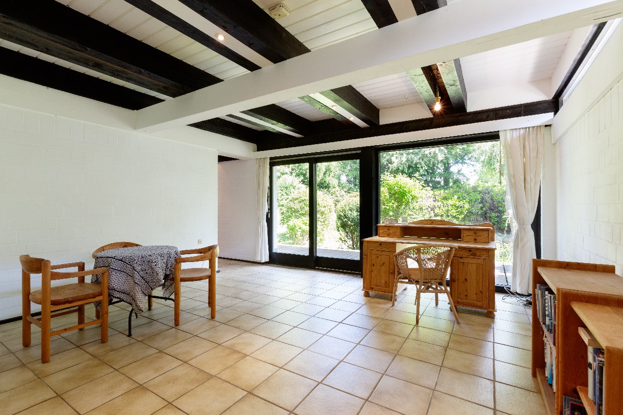 Sehr schöner offener Wohnbereich mit Schlaf- und Kochbereich und separatem Duschbad. Durch eine Schiebetür erhalten Sie den Zugang zur teilüberdachten rückwärtigen Terrasse, die sich nahezu über die gesamte Hausbreite erstreckt. Blick auf das wunderschöne große Gartenparadies, das vom Eigentümer liebevoll angelegt und stets gepflegt wurde.