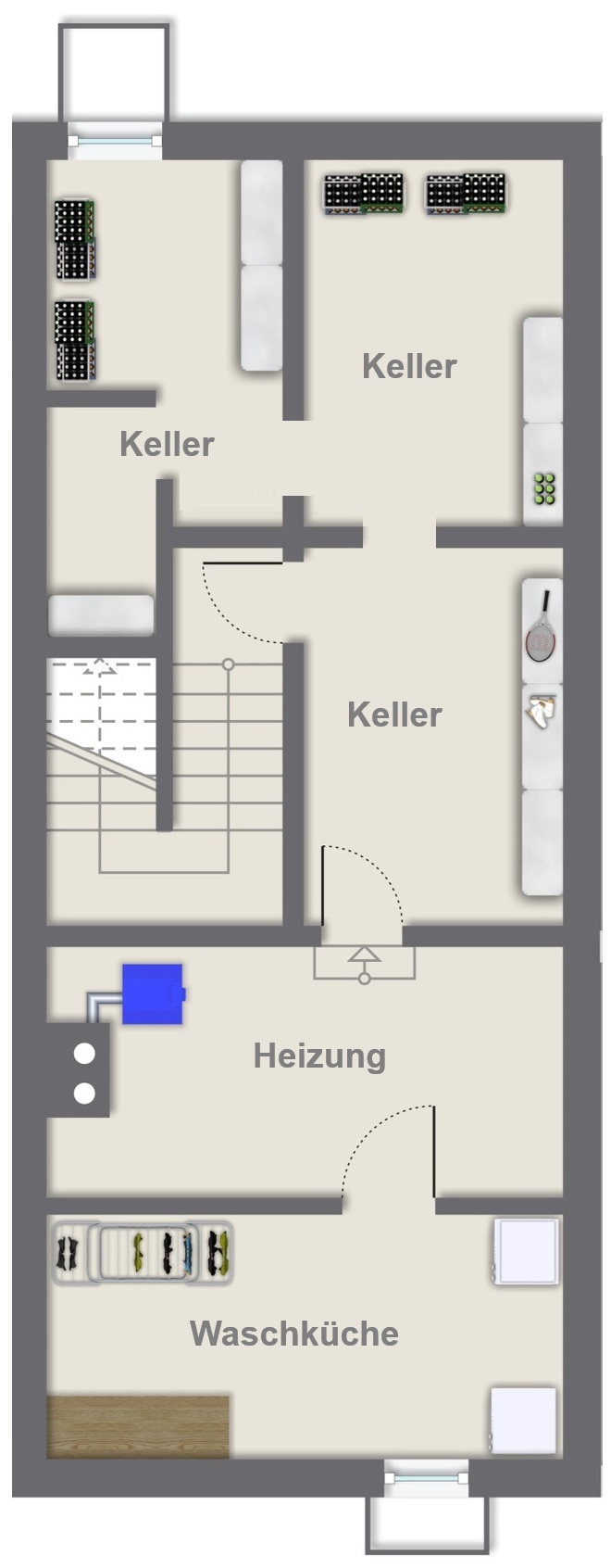 Teilunterkellerung mit 3 Kellerräumen; zusätzlich ein Heizungs- und ein Hauswirtschaftsraum