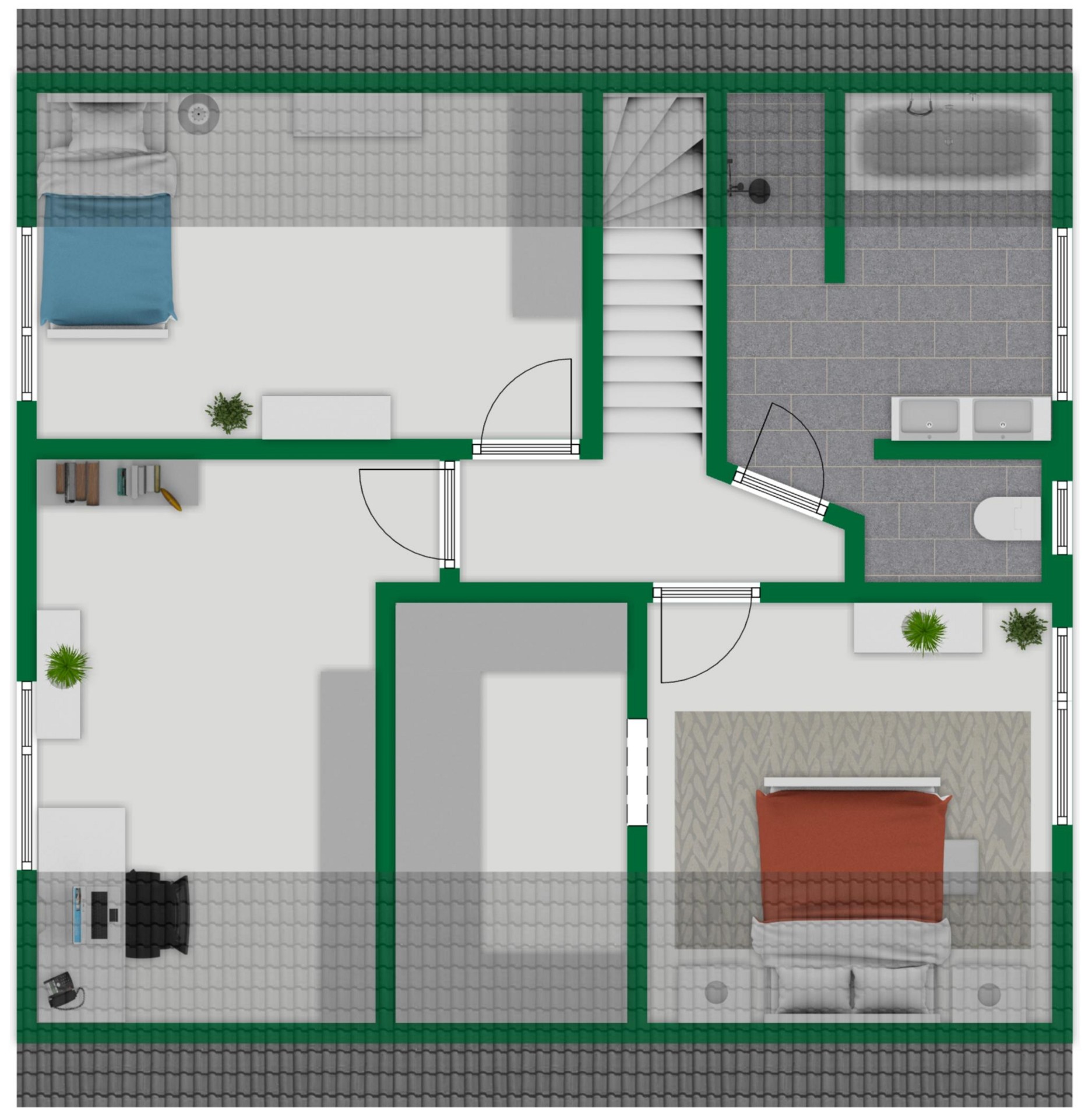 Im Obergeschoss erwarten Sie ein geräumiger Flur, ein riesiges Familienbad mit bodengleicher Dusche, Badewanne, Doppelwaschtisch, WC und Fenster sowie insgesamt drei Schlafzimmer. Das Elternschlafzimmer verfügt über einen angrenzenden, begehbaren Kleiderschrank mit maßgefertigtem Schranksystem, das im Preis inbegriffen ist. Dank des hohen Kniestocks sind die Dachschrägen kaum spürbar und bieten eine angenehme Raumhöhe. Zusätzlich sorgt ein Dachboden für weitere Staufläche.