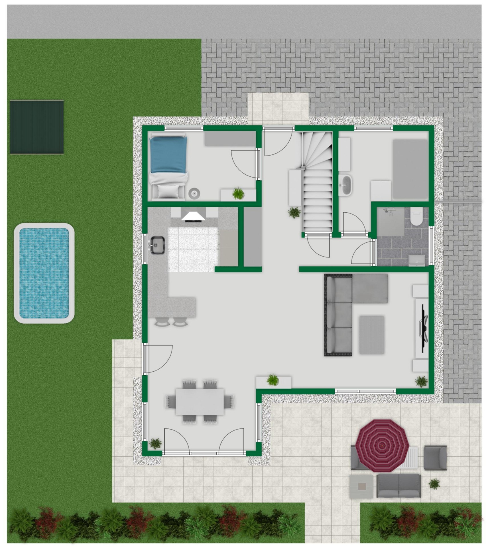 • Die Ausstattung des Hauses ist auf Komfort und Energieeffizienz ausgelegt. Dreifach verglaste Fenster mit Fliegennetzen, elektrische Rollläden sowie eine zentrale Lüftungsanlage mit Wärmerückgewinnung garantieren ein gesundes Raumklima bei gleichzeitiger Vermeidung von Schimmel. Eine moderne Photovoltaikanlage mit Eigenverbrauch und Einspeisung sorgt für geringe Energiekosten, unterstützt von der hervorragenden Energieeffizienzklasse A (37 kWh/m²a). CAT-7-Verkabelung und zahlreiche Steckdosen machen das Haus auch technisch zukunftssicher. Eine Garage in Überlänge mit elektrischem Tor und angrenzendem Abstellraum dient als praktischer Kellerersatz.
