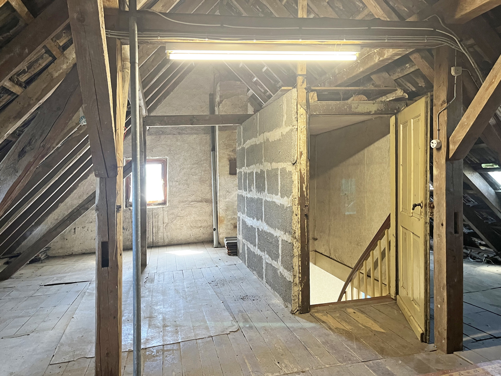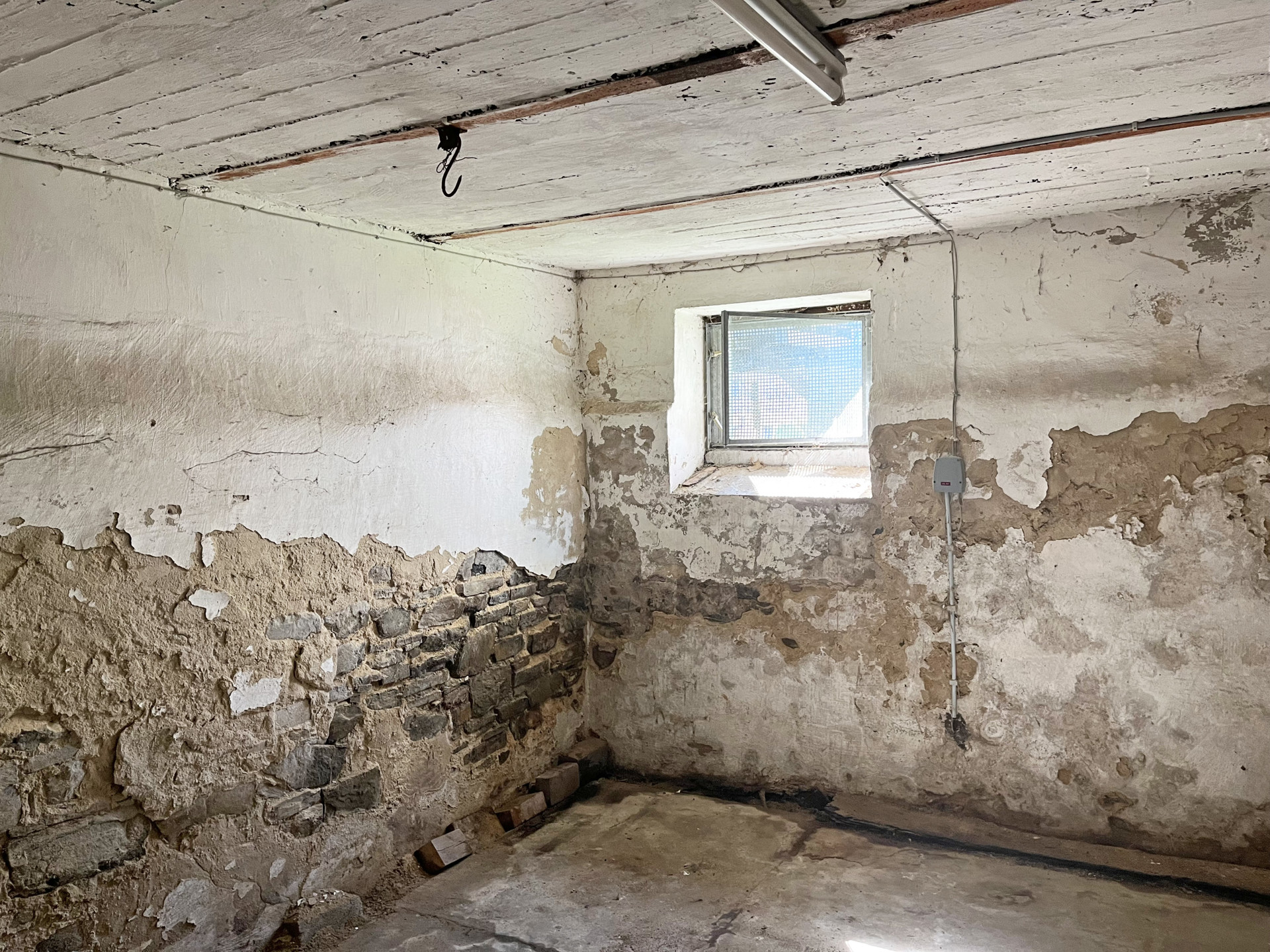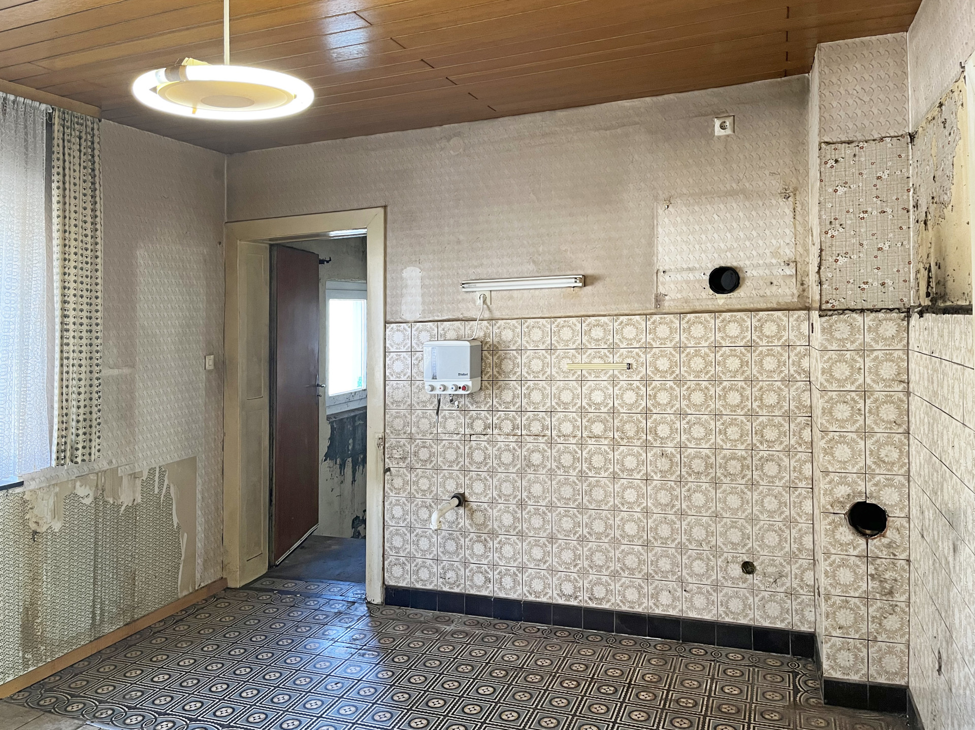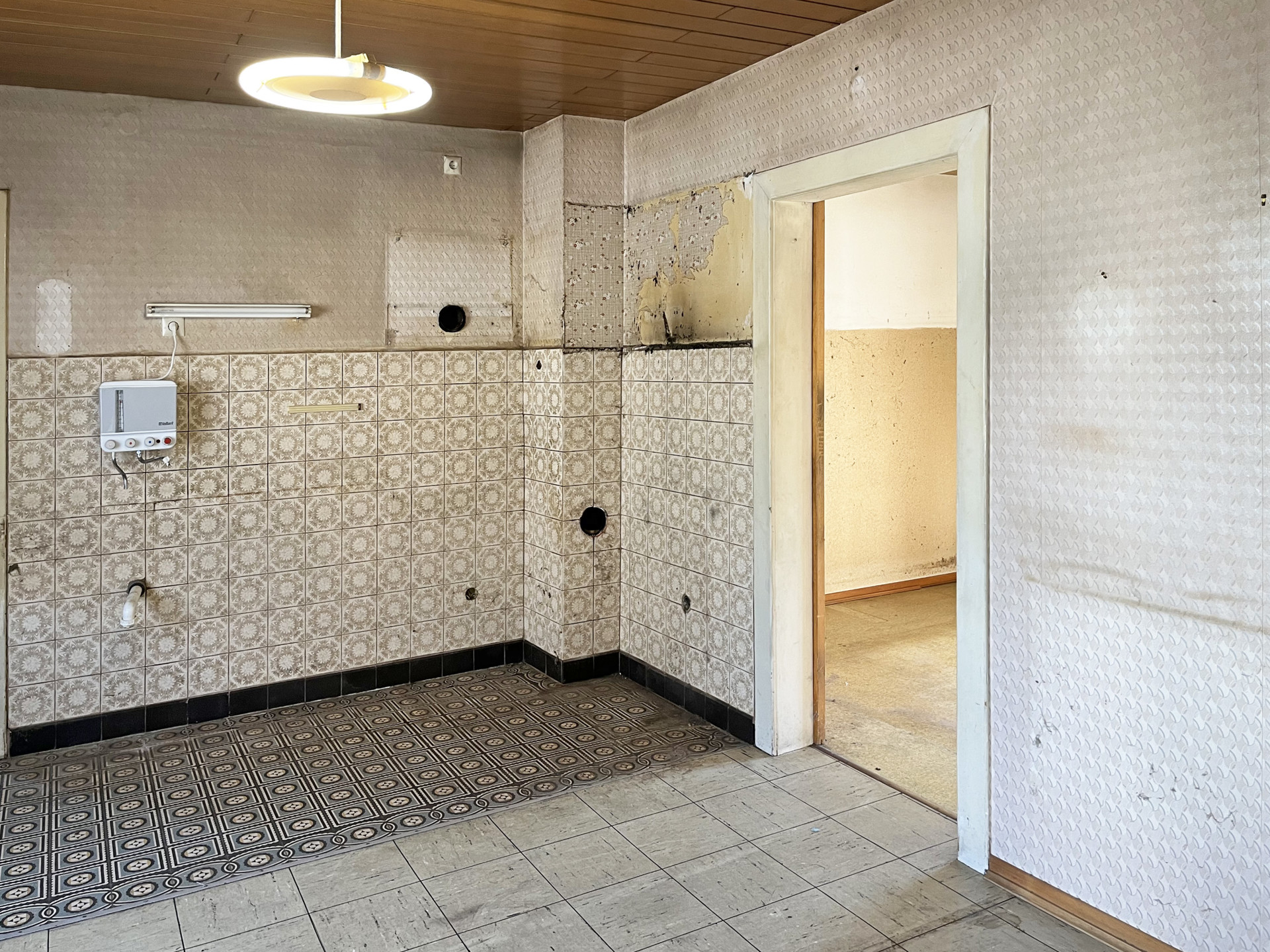 Die Immobilie befindet sich in einem stark renovierungsbedürftigen Zustand, bietet dennoch eine solide Grundstruktur – ideal für den handwerklich begabten Käufer.