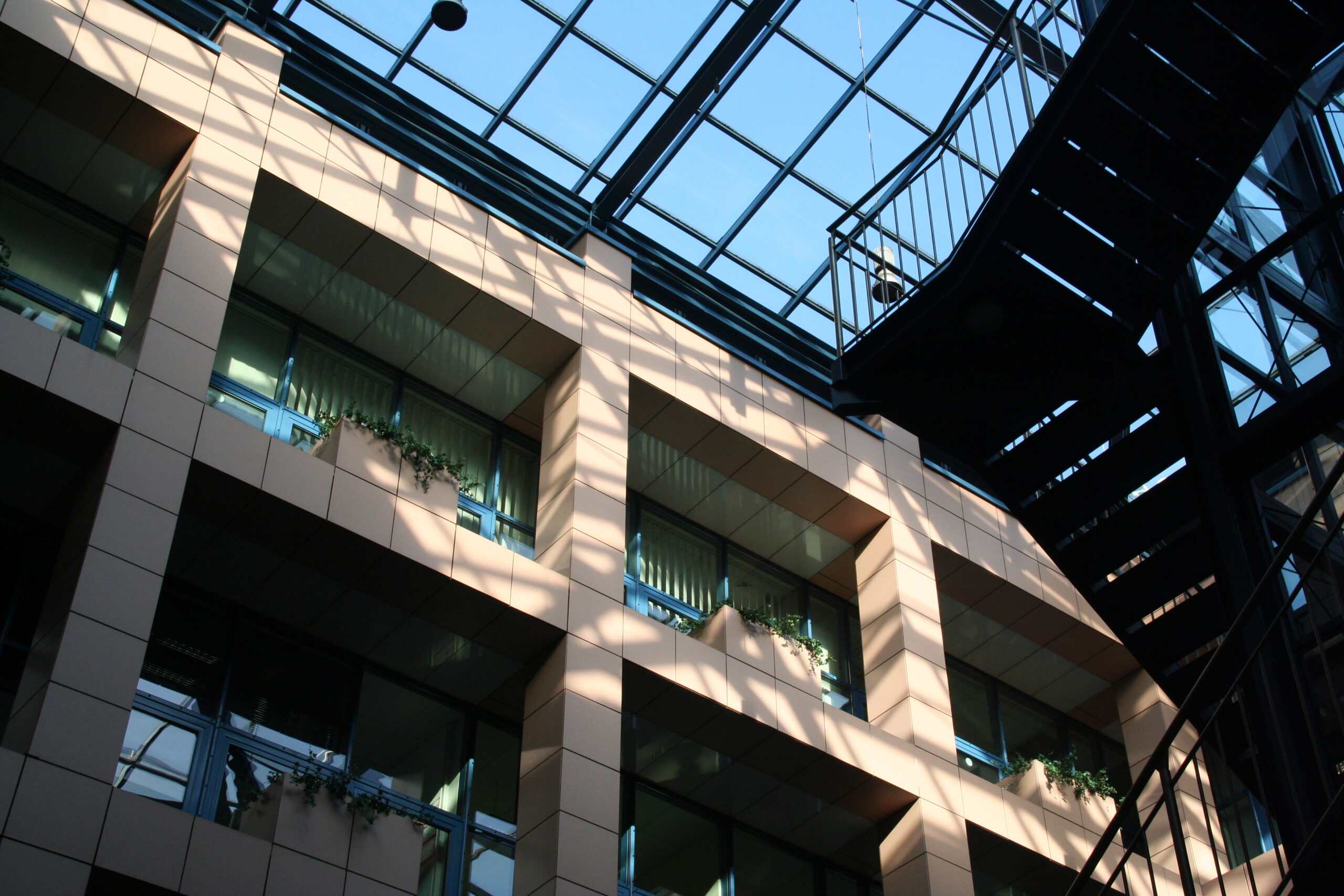 Sehr moderne Bauweise (Stahl und Glas), Deckenbeleuchtung, EDV-Arbeitsbeleuchtung, EDV-Verkabelung, Kabelkanäle, Teeküche, getrennte Damen und Herren WCs, Bodenbelag nach Wunsch, Kunststofffenster, Sonnenschutz, Personenaufzug, Fensterbankkabelkanal, Pförtner