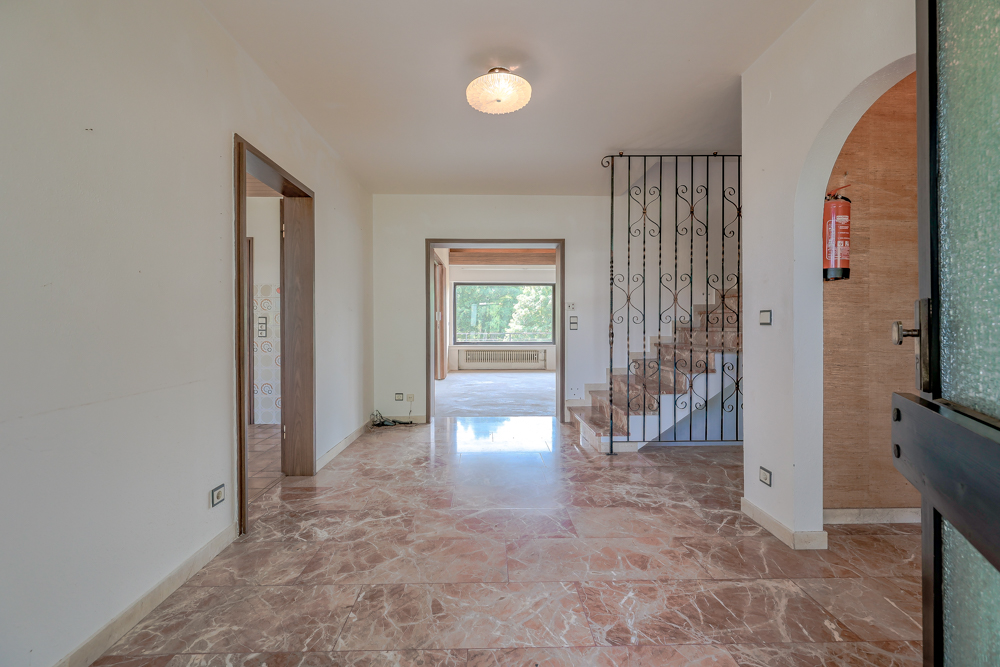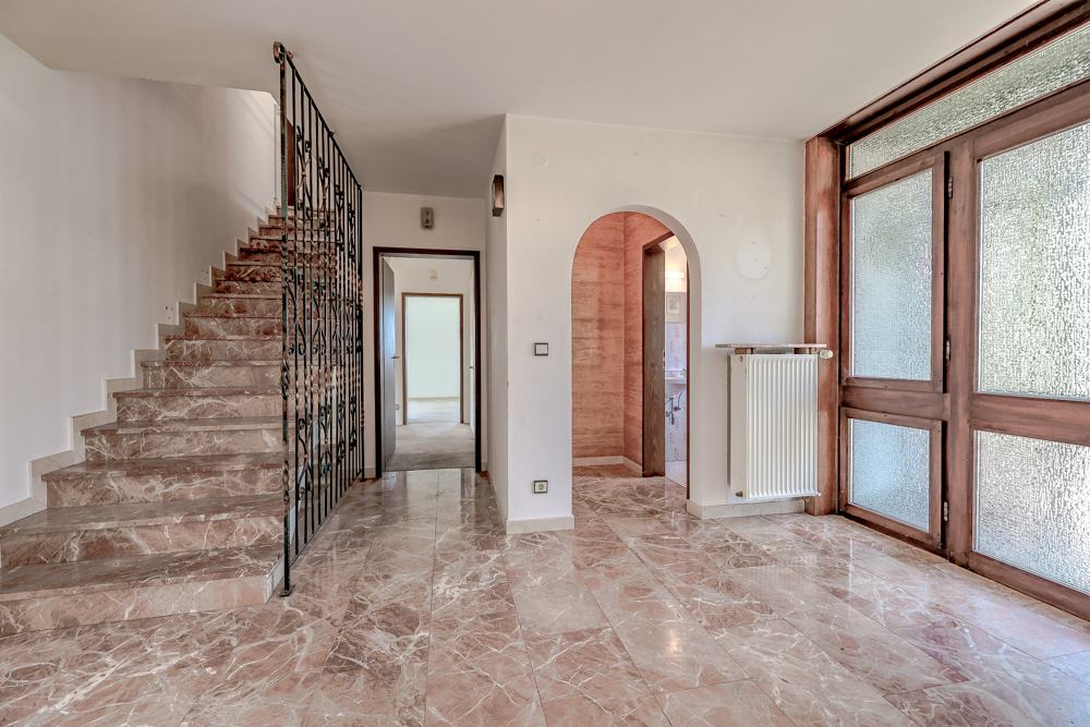 + Große Garage mit elektrischem Tor, gefliesten Boden, Wasseranschluss und Zugang zur Erdgeschoss-Terrasse