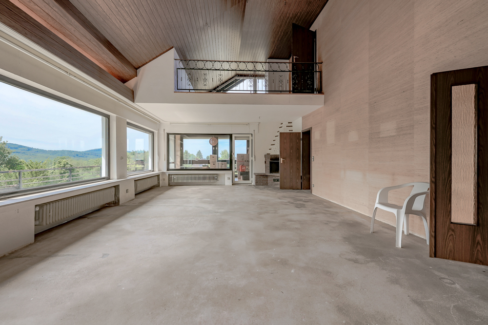 Sehr großer Wohnbereich mit Galerie zum Dachgeschoss und imposantem Eckkamin,