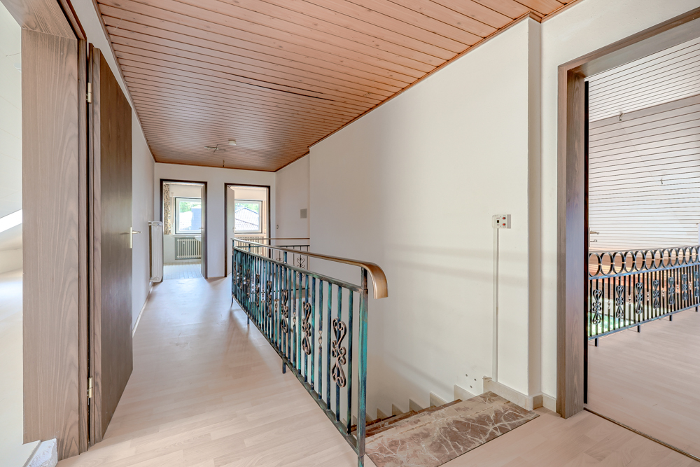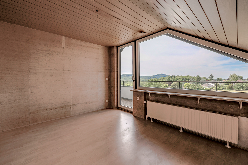 Zugang zu Balkon mit Blick ins Siebengebirge sowie zur großen Dachterrasse.