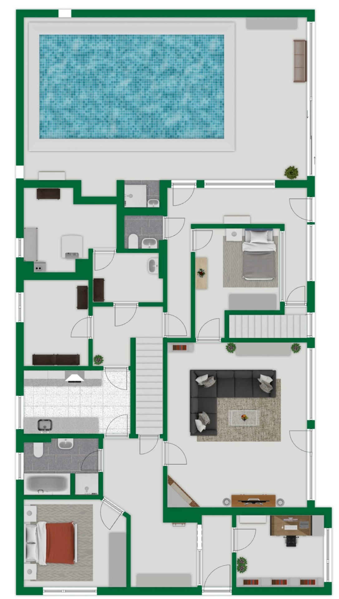 Besonders hervorzuheben ist die außergewöhnliche Aufteilung: Neben Erdgeschoss, Dachgeschoss und Untergeschoss verfügt das Gebäude über ein zusätzliches Tiefgeschoss, das ursprünglich als Bunker vorgesehen war. Durch die Kombination aus großzügigen Wohnbereichen, Nebenräumen und individuellen Ausbaumöglichkeiten eignet sich die Immobilie perfekt für Familien mit großem Platzbedarf oder Mehrgenerationenkonzepte.