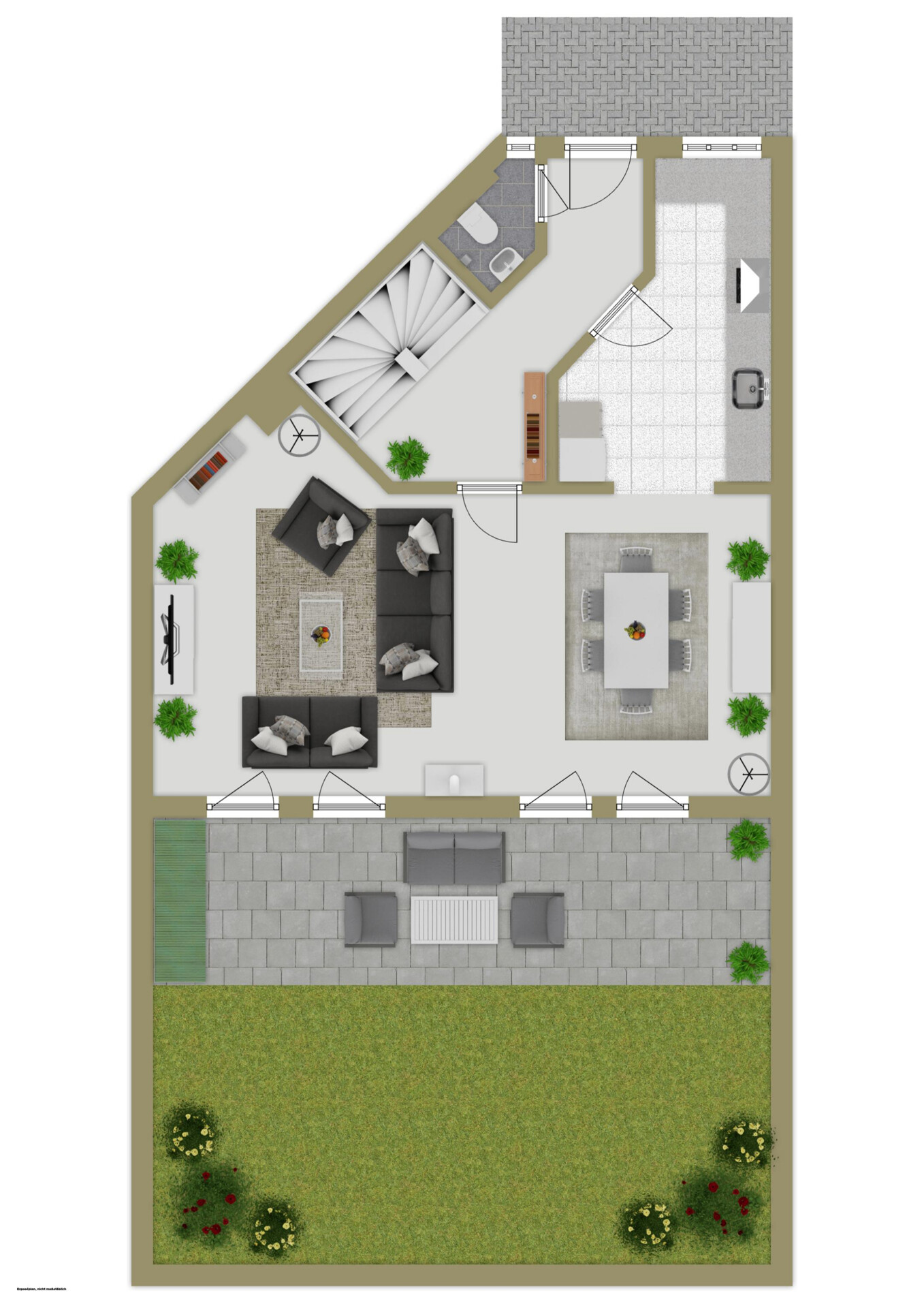 Bereits beim Eintritt setzt das Haus ein Statement: edler schwarzer Granit in Diele und Treppe verleiht eine elegante, zeitlose Atmosphäre. Der lichtdurchflutete Wohn- und Essbereich überzeugt mit Offenheit und Wärme – nicht zuletzt dank des gemütlichen Kaminofens, der für stimmungsvolle Abende das ganze Jahr über sorgt. Die moderne Küche integriert sich harmonisch und bietet viel Platz für Kochen, Genuss und gemeinsame Momente.