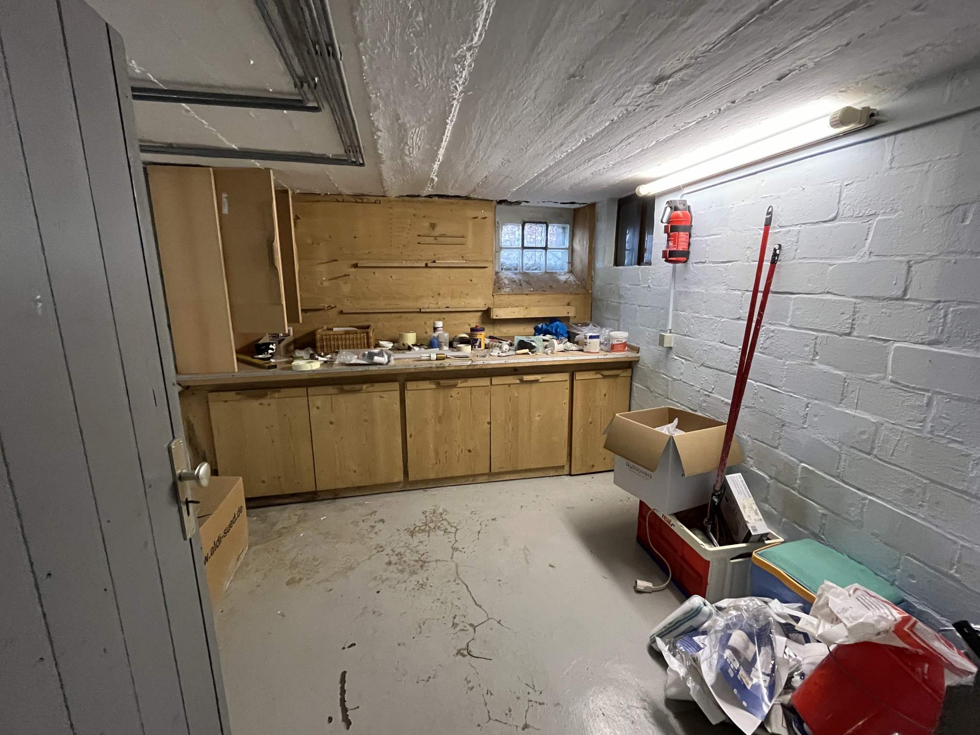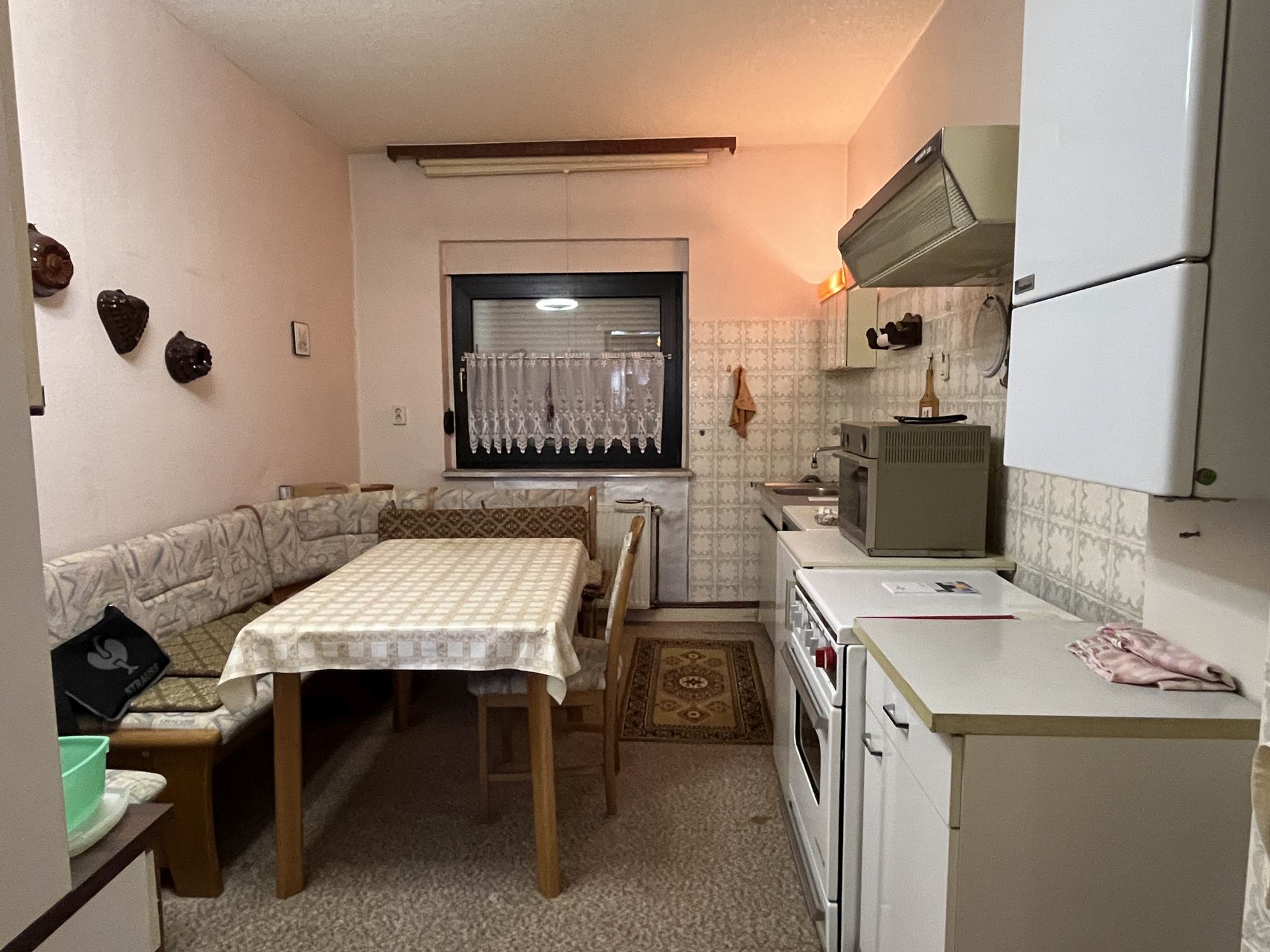 Die Ausstattung weist insgesamt einen renovierungsbedürftigen Zustand auf. Positiv zu erwähnen ist, dass die Gas-Etagenheizungen in den letzten Jahren modernisiert wurden. Das Badezimmer stammt aus den 2000er Jahren, die doppelt verglasten Kunststofffenster aus den 1980er Jahren. Die Bodenbeläge bestehen überwiegend aus einfachem Laminat oder Teppich.