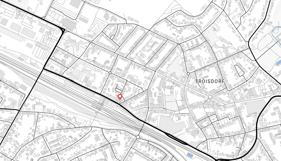 Das Objekt befindet sich in zentraler Lage von Troisdorf und bietet eine hervorragende Verkehrsanbindung für Kunden, Mitarbeiter und Geschäftspartner. Der Bahnhof ist fußläufig erreichbar und ermöglicht eine schnelle ÖPNV-Verbindung nach Köln, Bonn und Siegburg.