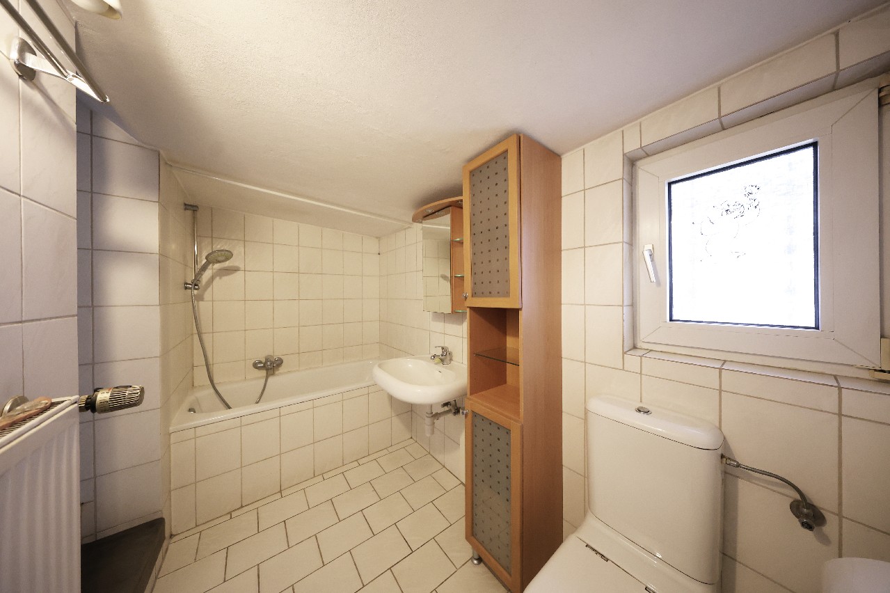 Duschbad mit Waschbecken, WC und Fenster, Wannenbad mit Waschbecken, WC und Fenster.Heizung: