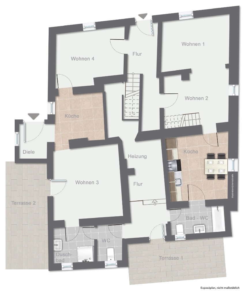 Erdgeschoss zwei separate Wohneinheiten mit Verbindungsmöglichkeiten