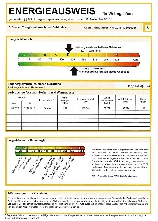 - Energieverbrauchskennwert: 115,90 kWh/(m²*a)