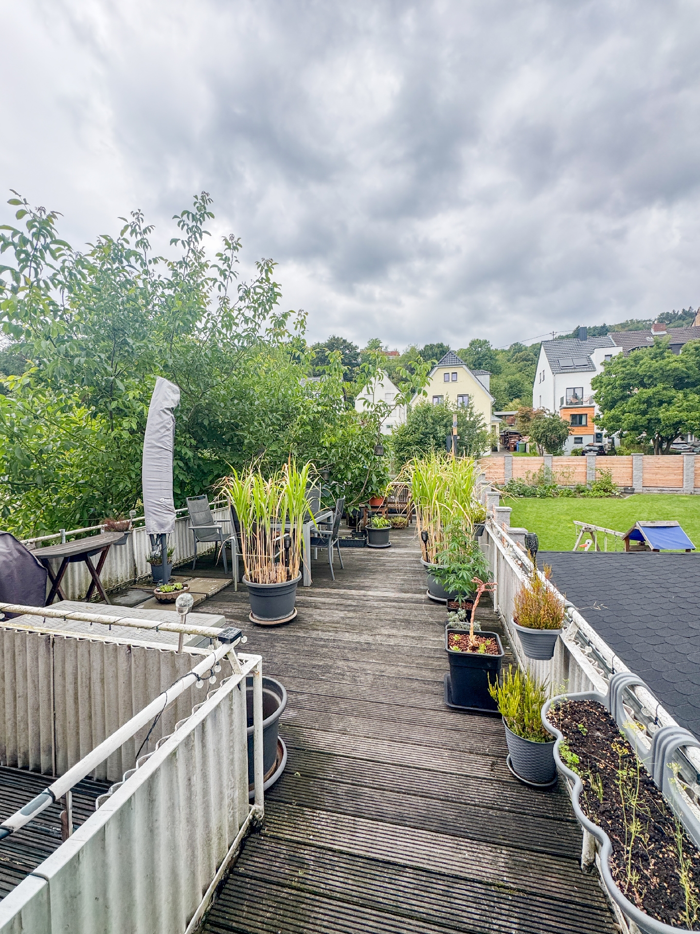Diese beiden Etagen sind aktuell zusammenhängend vermietet und bieten: 4 Zimmer, geräumige Küche, Duschbad sowie ein separates Wannenbad. Balkon, große, sonnige Dachterrasse mit Blick in den Garten.