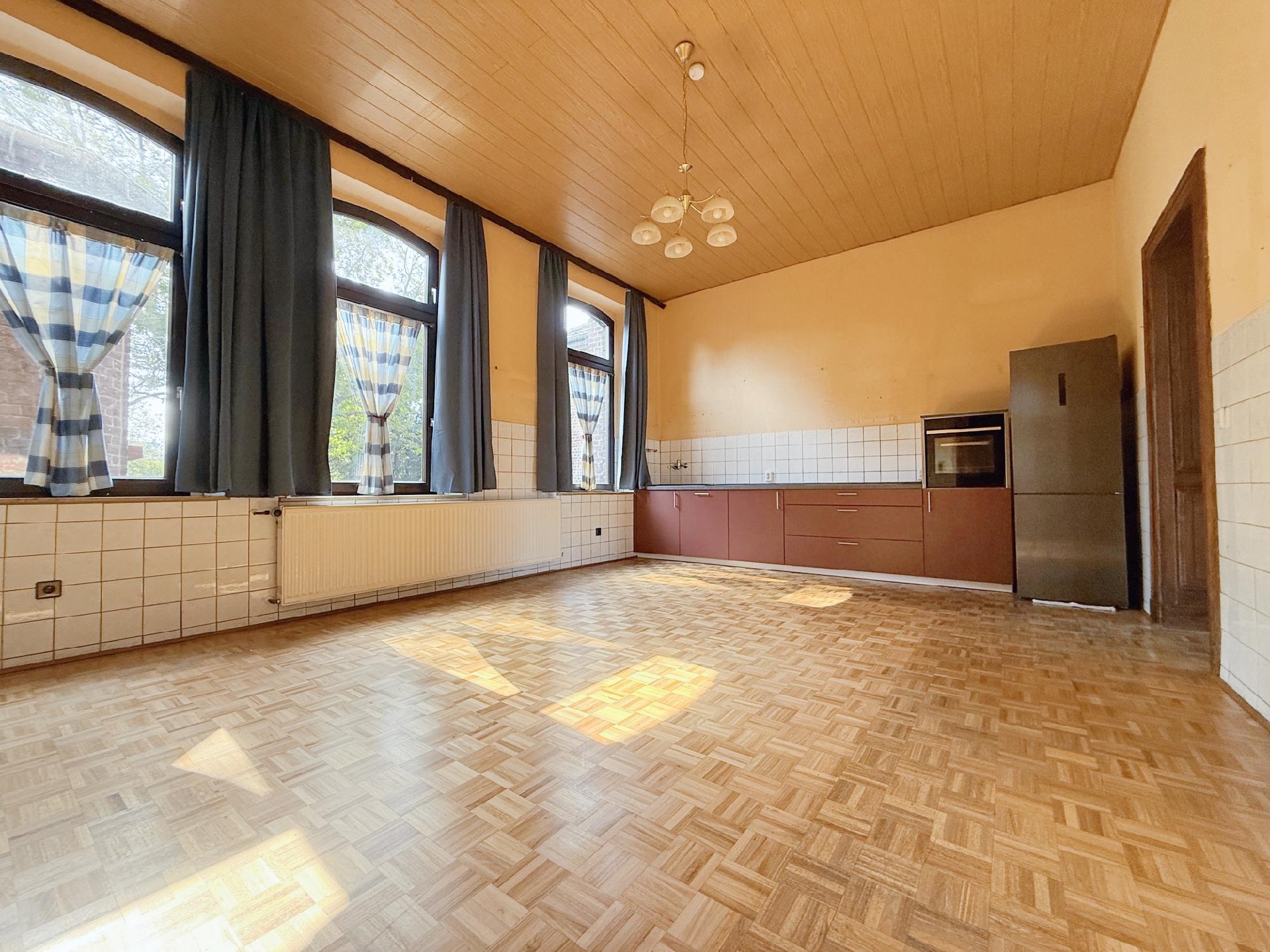Im 2. Obergeschoss erwartet Sie ein beeindruckend heller Wohnbereich, der dank seiner Weitläufigkeit viel Raum für individuelle Einrichtungsideen lässt. Die angrenzende, geräumige Küche bietet nicht nur viel Arbeitsfläche, sondern auch ausreichend Platz für einen großen Esstisch – perfekt für gesellige Runden. Ein weiteres Zimmer auf dieser Ebene eignet sich ideal als Kinder-, Gäste- oder Arbeitszimmer. Abgerundet wird das Stockwerk durch ein hell gefliestes Duschbad und einen zentralen Flur.