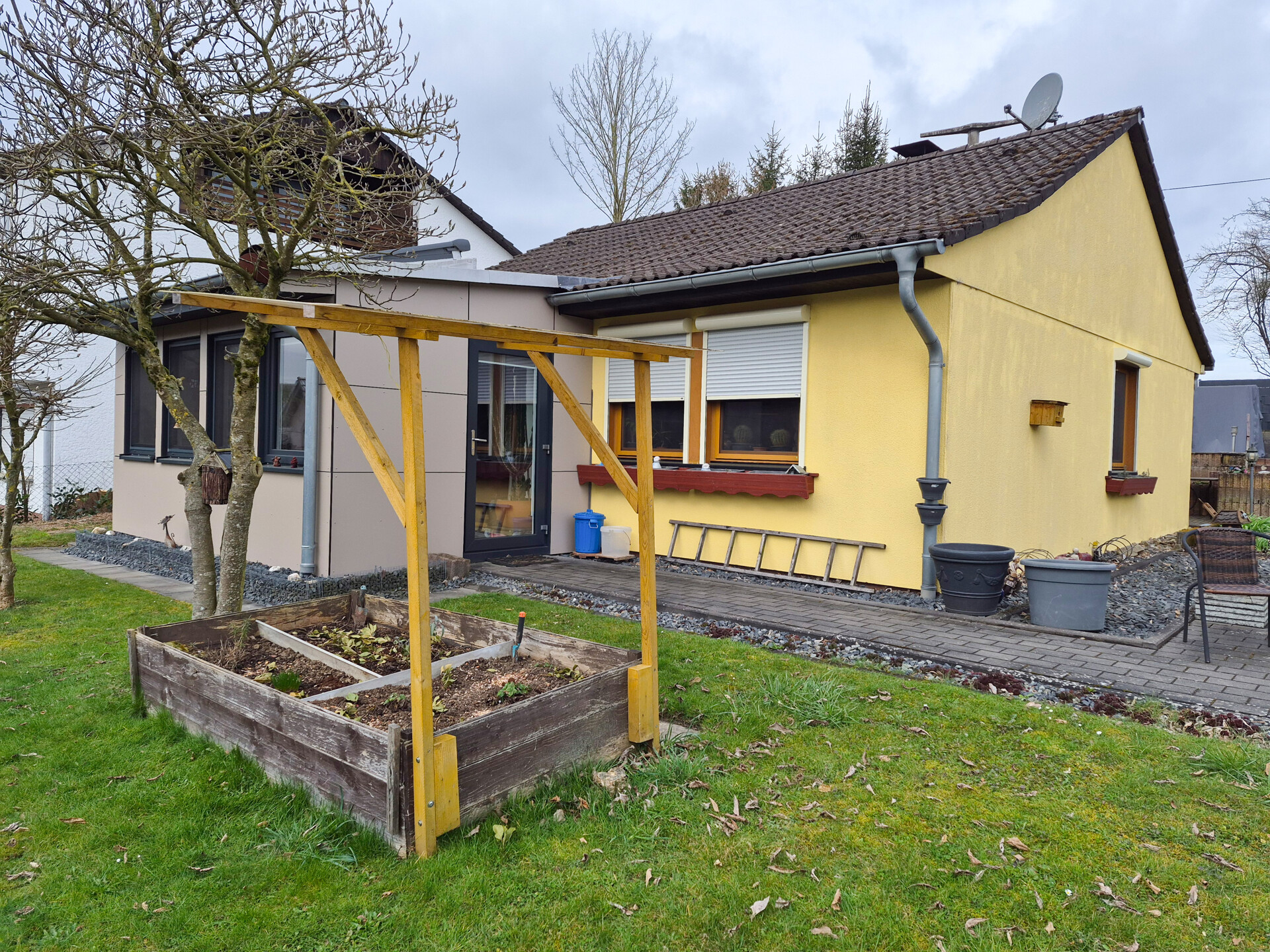 Die rund 115 m² Wohnfläche sind großzügig geschnitten und überzeugen durch eine durchdachte Raumaufteilung. Auch das ca. 635 m² große Grundstück lässt keine Wünsche offen: Der liebevoll angelegte Garten mit Beeten, Sträuchern und charmanten Gehwegen lädt zum Verweilen ein. Im hinteren Bereich bieten verschiedene Terrassen sowie ein Garten- und ein Gerätehaus vielfältige Nutzungsmöglichkeiten. Für Ihre Fahrzeuge ist bestens gesorgt: Neben einer Doppelgarage mit zwei davorliegenden Stellplätzen ist das Grundstück zusätzlich über eine zweite Einfahrt im oberen Gartenbereich zugänglich. -
