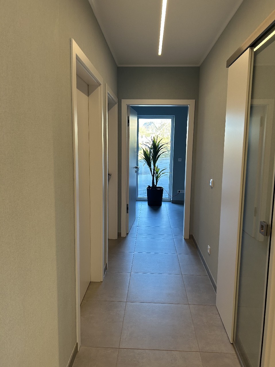 • 4 Zimmer, offene Wohnküche, Diele, 2 x Bad/WC, Hauswirtschaftsraum, Haustechnik, Terrasse und große Doppelgarage mit Toilette.