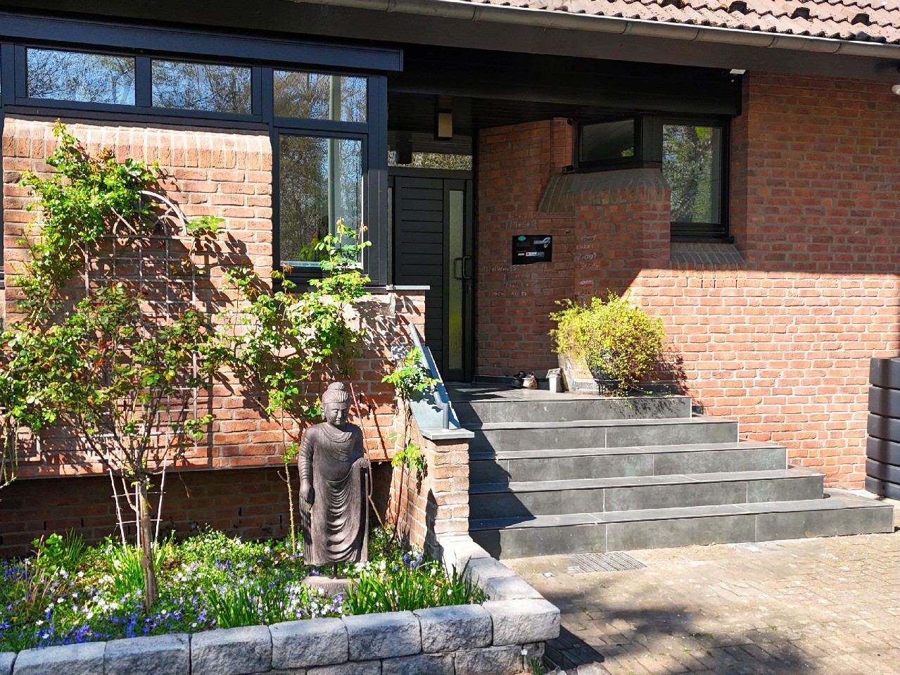 schön gestaltete, asiatische und sehr sonnige Gartenoase mit großer Terrasse, Grillplatz uvm.