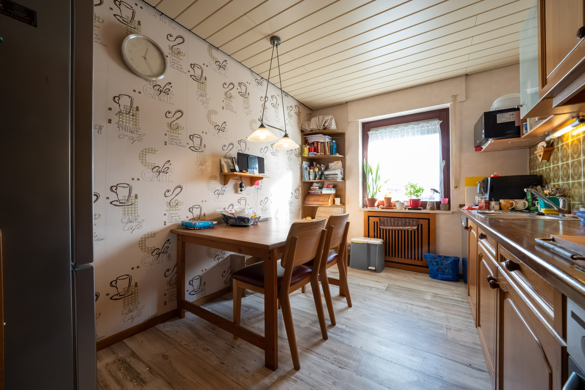 Im ersten Obergeschoss befindet sich eine vermietete Wohnung mit einer Größe von ebenfalls 77 m². Die monatliche Kaltmiete beträgt hier 540 €. Die Wohnung überzeugt mit einer durchdachten Raumaufteilung bestehend aus einem Wohnbereich, einem Esszimmer, einem Schlafzimmer und einem Tageslichtbad mit Badewanne sowie einer Küche.
