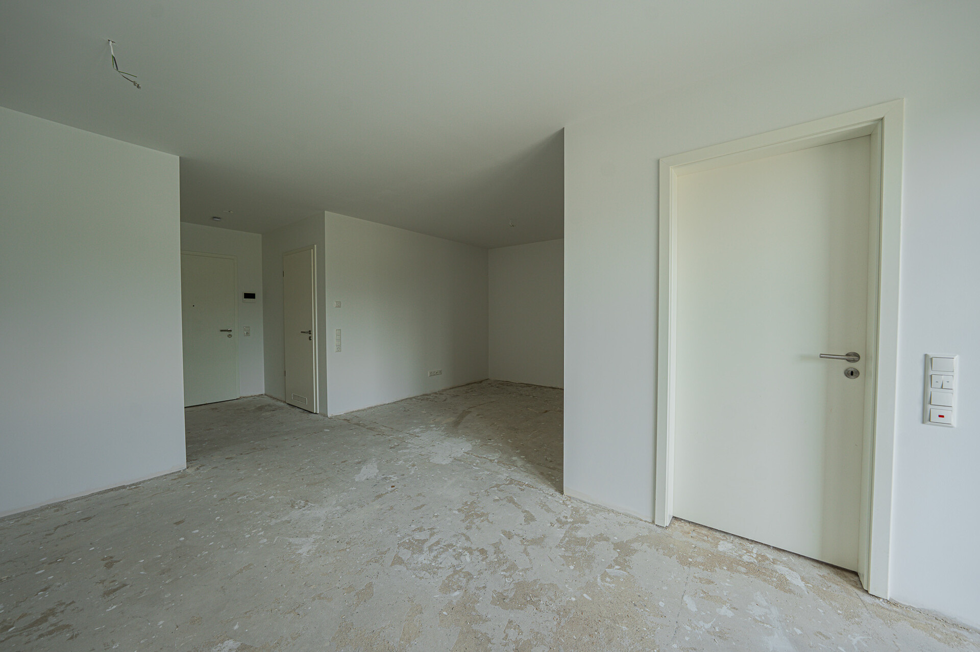 Besonders smart gelöst ist das innenliegende Badezimmer: ebenerdige Dusche, klare Linien, hochwertige Ausstattung – kompakt, aber durchdacht. Der integrierte Waschmaschinenanschluss spart Platz und Wege, ideal für den urbanen Alltag. Lediglich der finale Bodenbelag darf noch ganz nach den Vorstellungen des Käufers verlegt werden – so lässt sich der persönliche Stil perfekt einbringen.