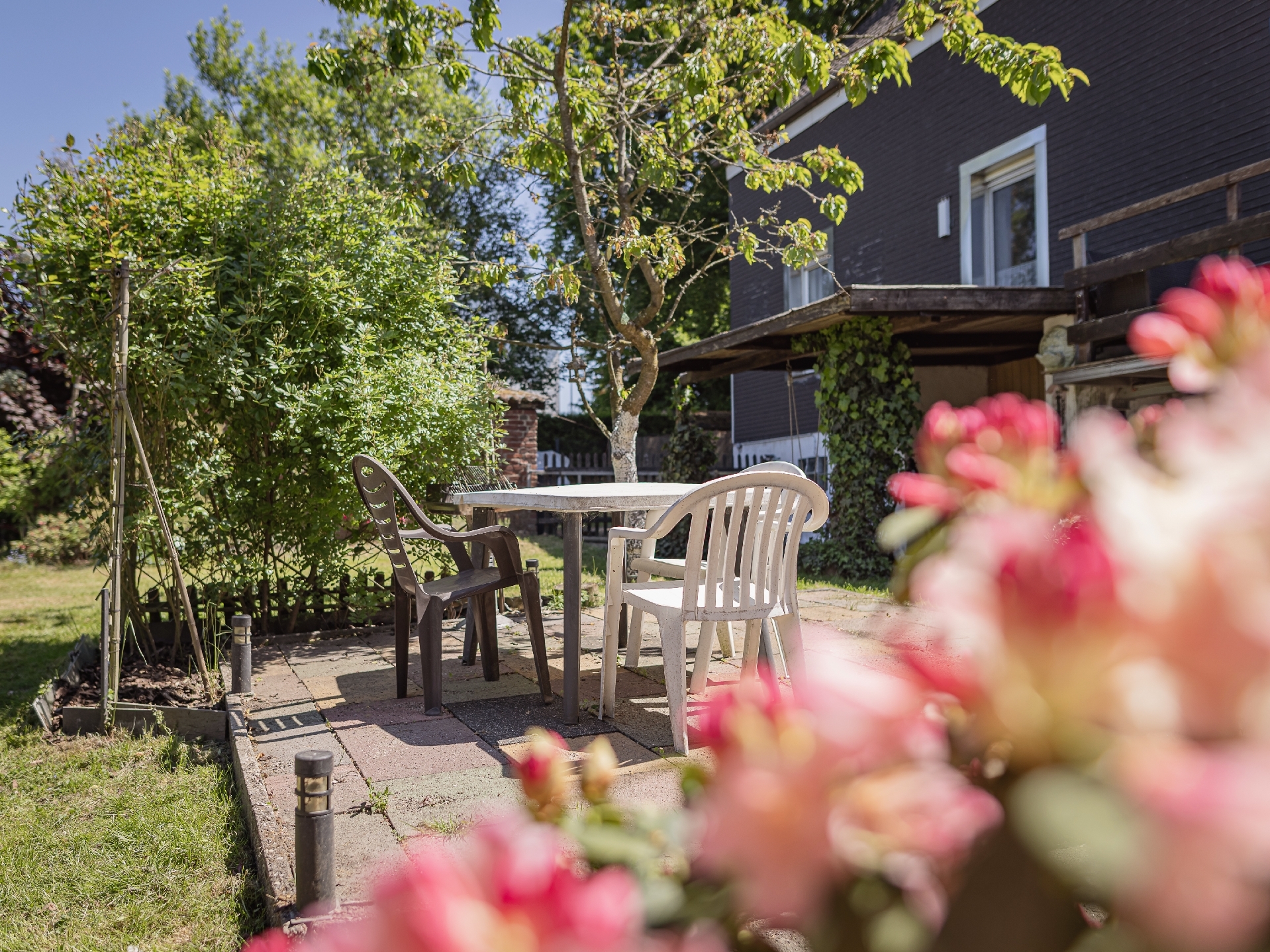 Besonders hervorzuheben ist die rückwärtige Grundstückslage: Direkt hinter dem Garten verläuft ein ruhiger Wanderweg, der in eine offene Wiesen- und Feldlandschaft übergeht und ein hohes Maß an Ruhe und Naherholung bietet.