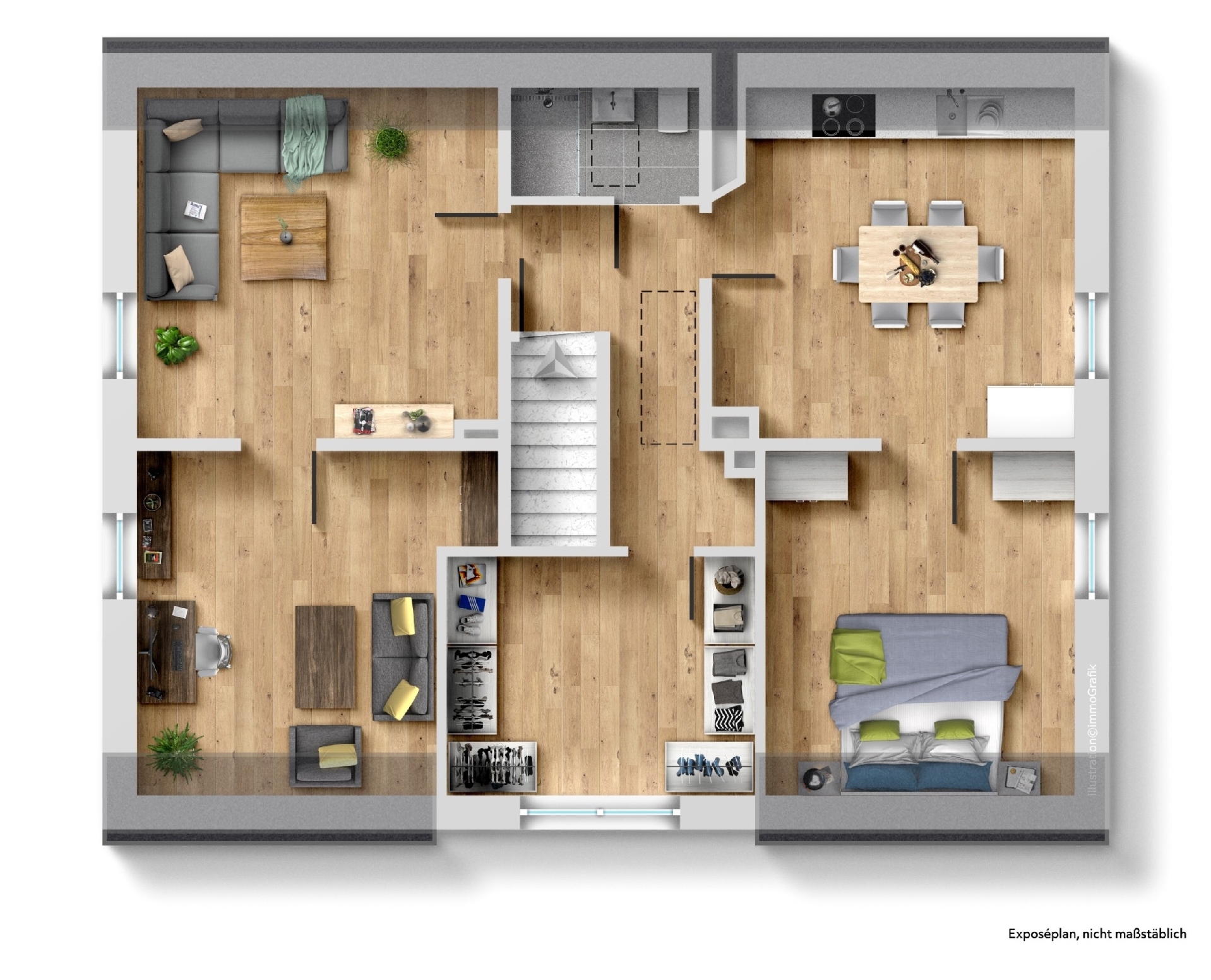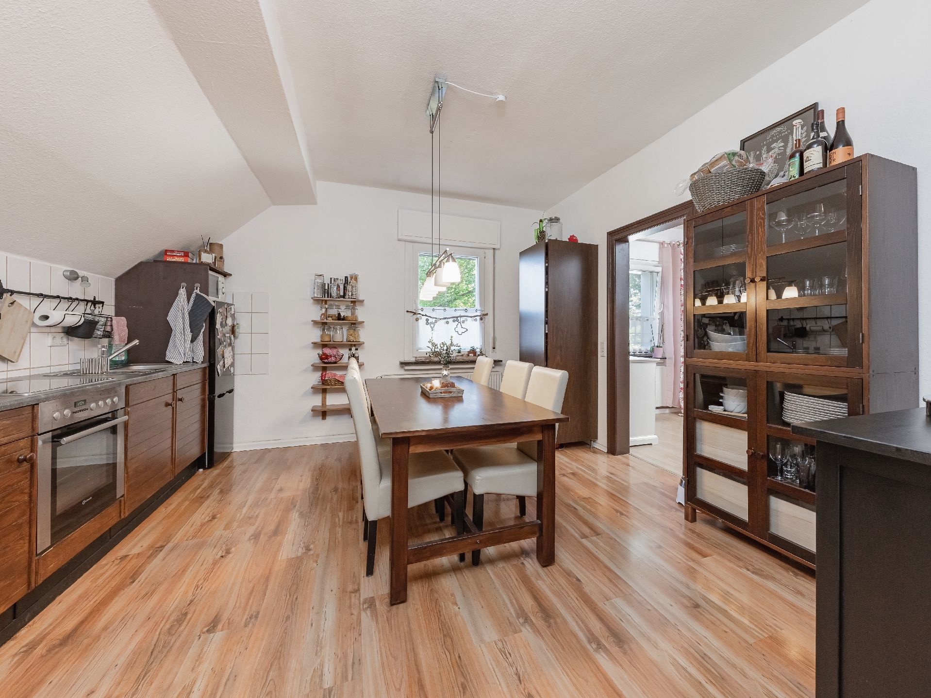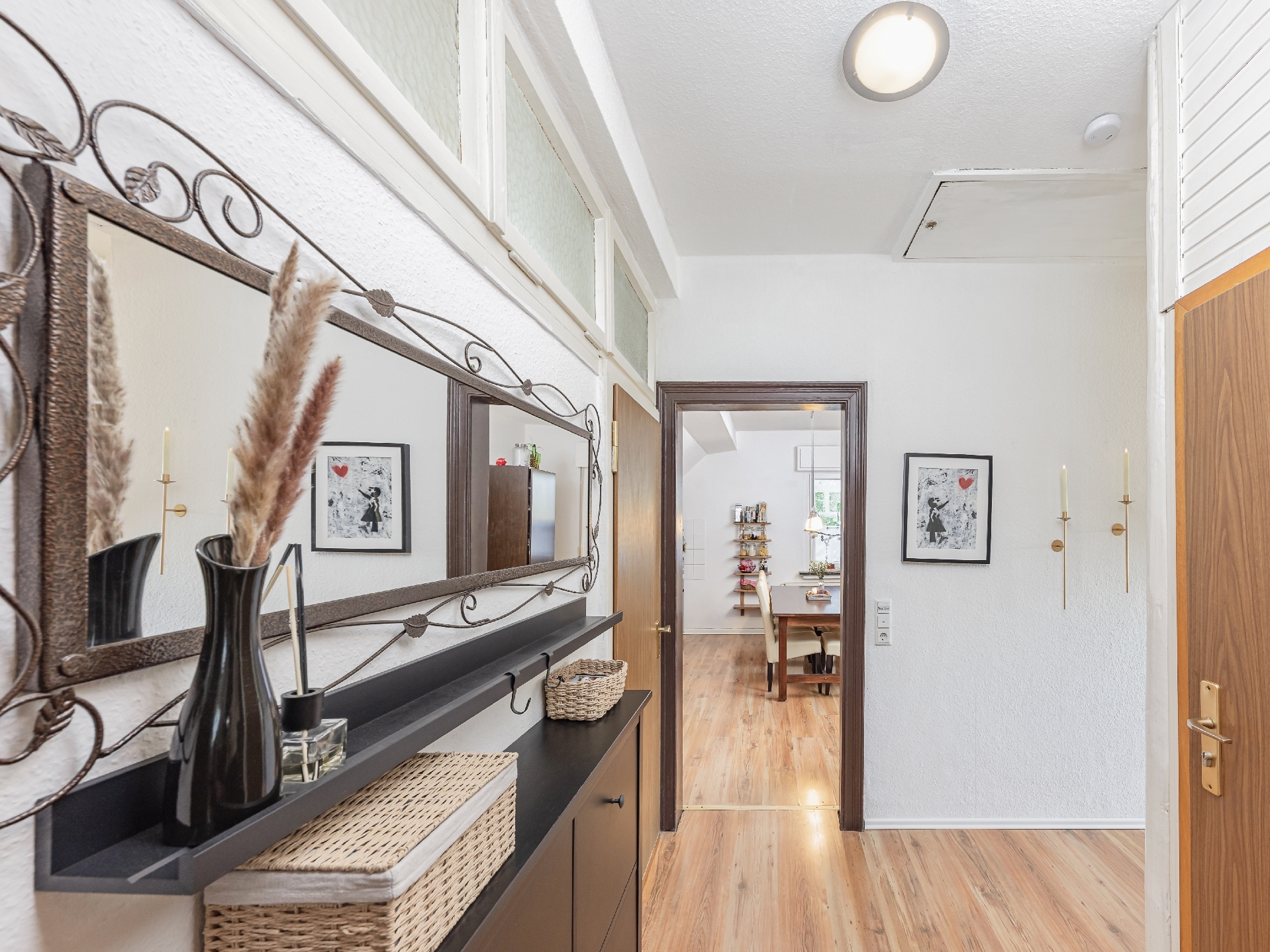 – leerstehende Erdgeschosswohnung mit Gartenzugang (3 Zimmer, Küche, Bad) – vermietete Obergeschosswohnung mit vier Zimmern (4 Zimmer, Küche, Diele, Bad) – voll unterkellert mit zusätzlicher Lagerfläche und Gartenzugang