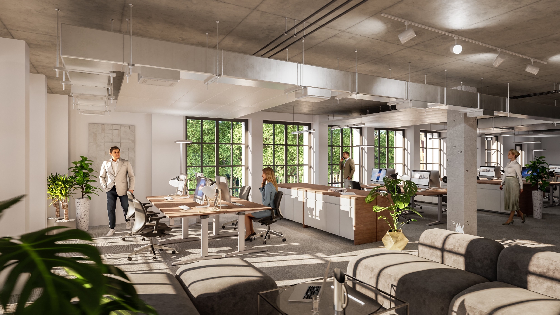 Viele weitere Details: Weitere Anpassungsmöglichkeiten, um den Raum individuell und nach den spezifischen Anforderungen Ihres Unternehmens zu gestalten.Die Wände werden in einer modernen Optik, ähnlich von Sichtbeton, übergeben, was den Räumlichkeiten einen zeitgemäßen und industriellen Charme verleiht.